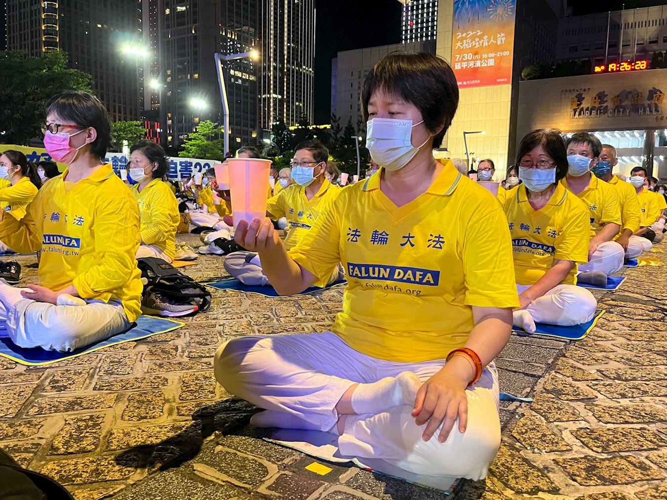 ![]() 图1:法轮功学员在台北市政府广场前举办反迫害二十三周年烛光悼念活动。 |