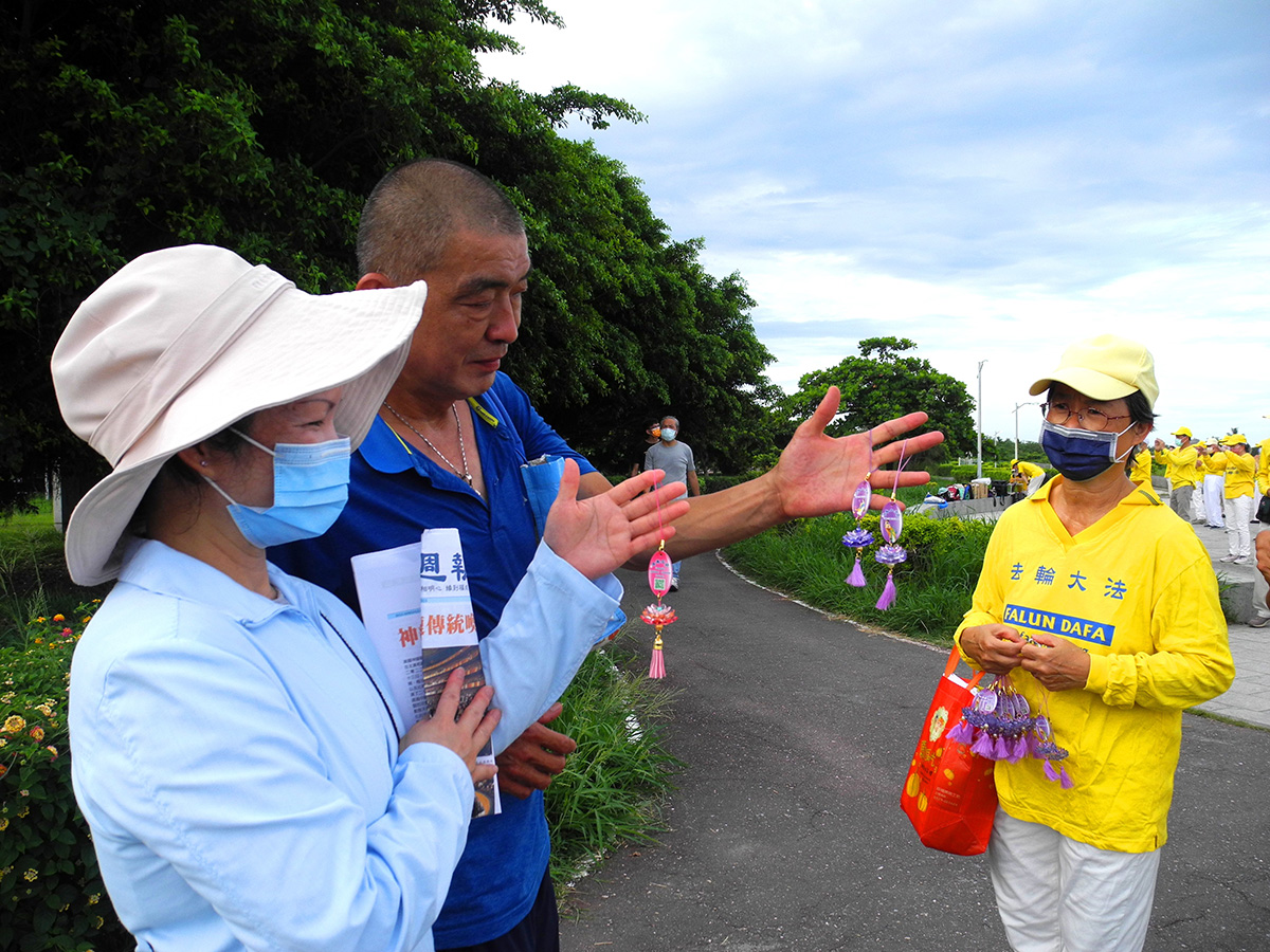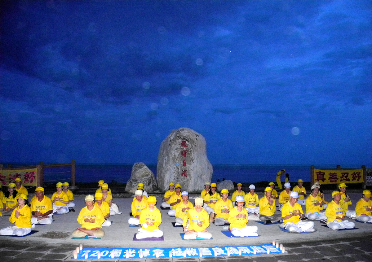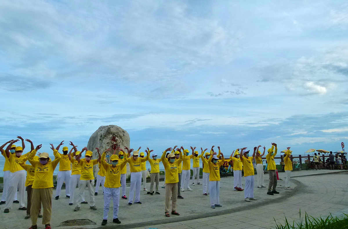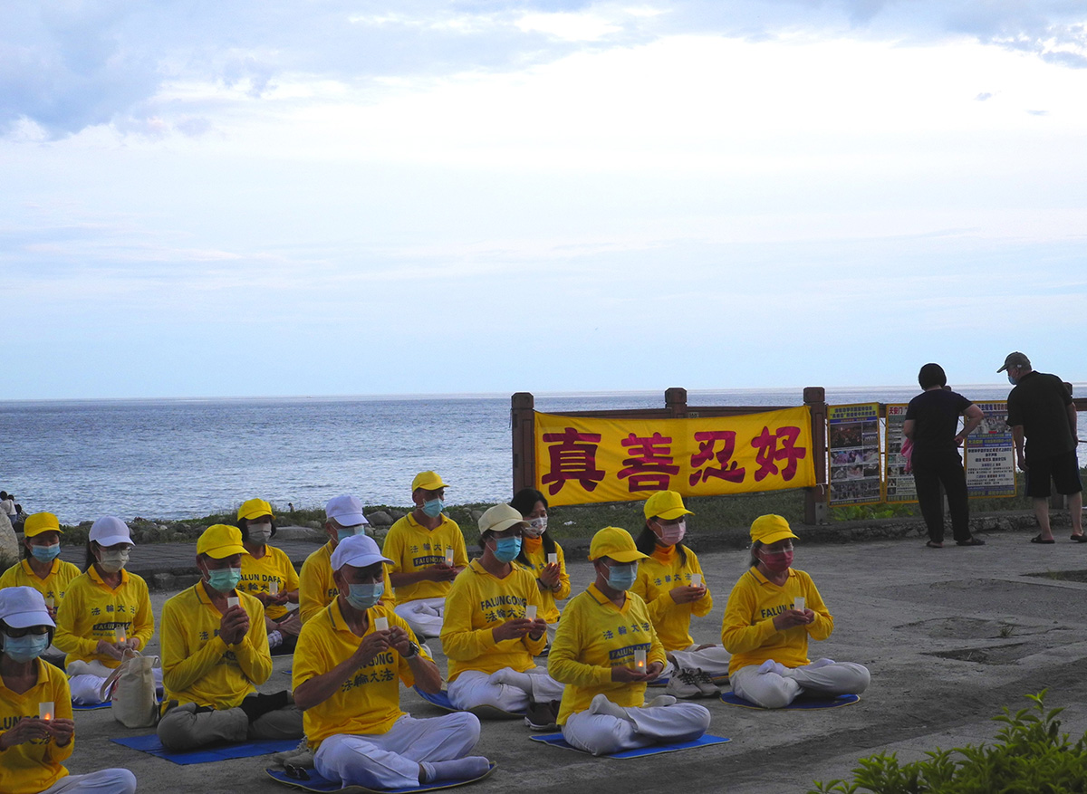 ![]() 图2:二零二二年七月十六日晚,台东法轮功学员在海滨公园举办反迫害二十三周年的烛光悼念活动。图为学员们在集体炼功。 |