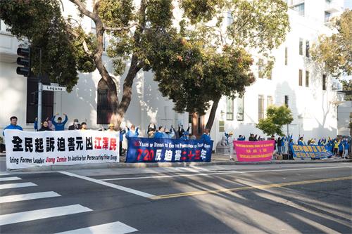 第三代韩裔贾斯丁(Justin)和母亲衫(Sun)是旧金山居民,很早就已经开始关注法轮功在中国受到的迫害。贾斯丁表示,“中共对待其人民,一点也不尊重,特别是迫害法轮功修炼者的罪魁祸首江魔头,非常邪恶。”