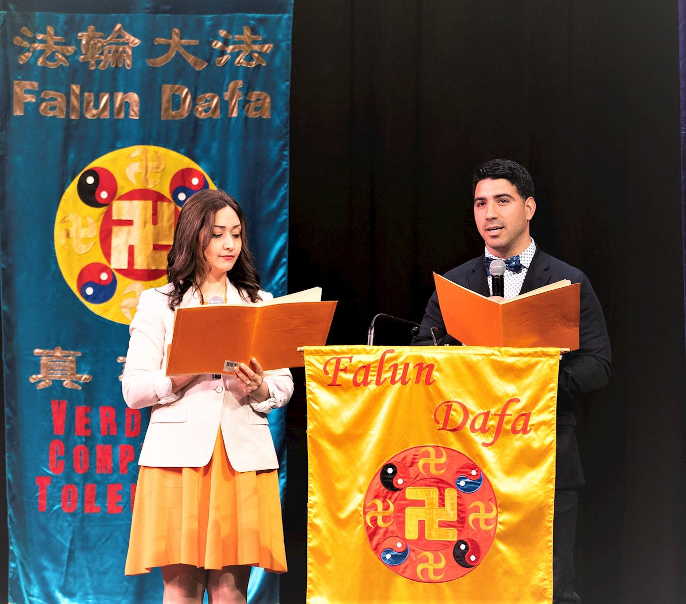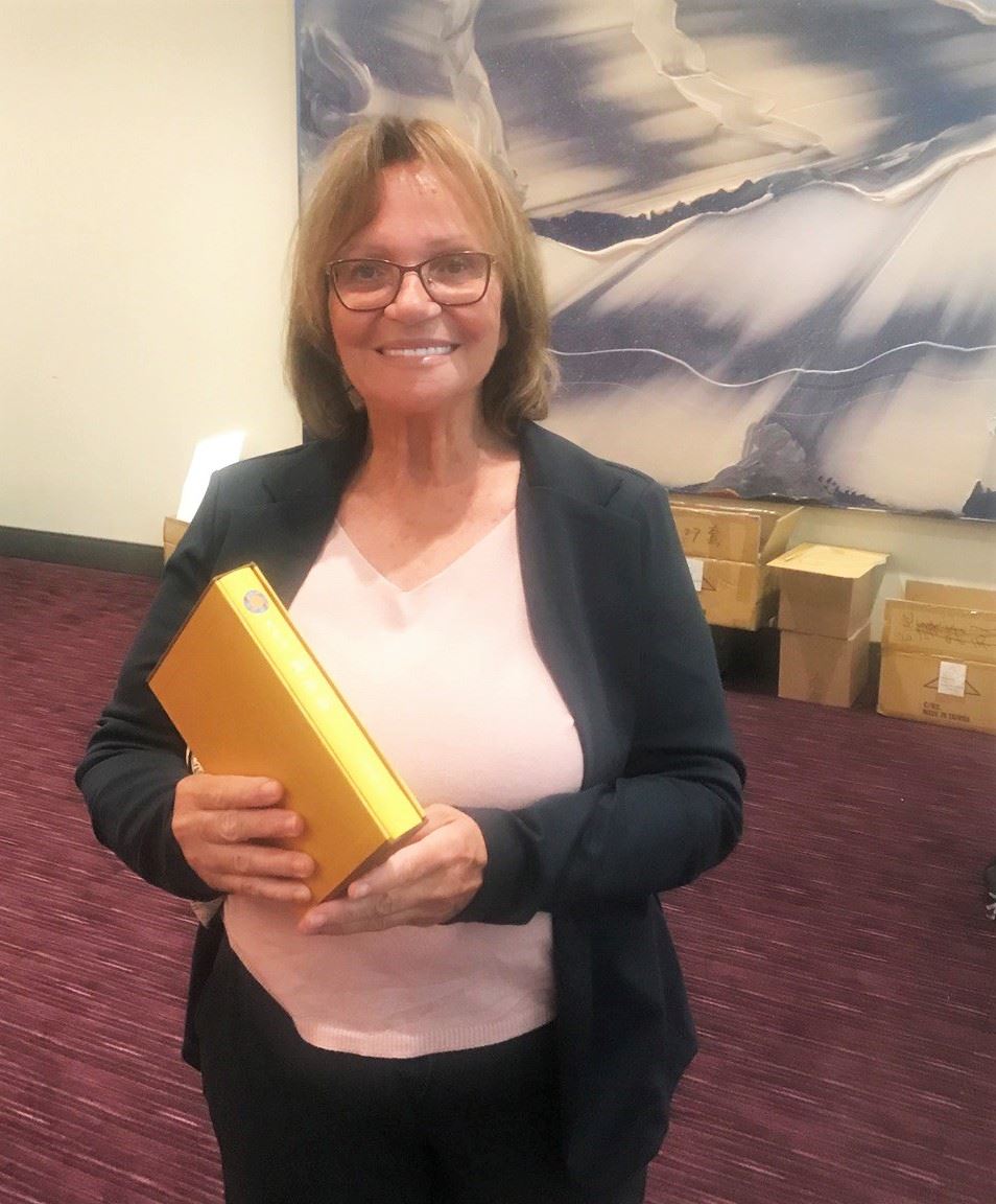 所以她想要学习用中文恭读《转法轮》,于是在大法书展位请了一本中文《转法轮》。