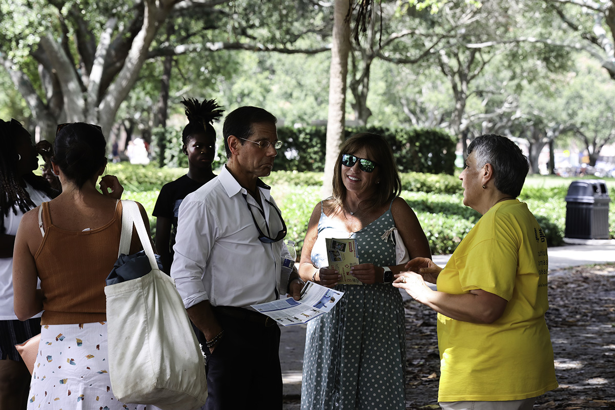 ![]() 图1~4:部分佛罗里达法轮功学员圣彼得堡市中心的公园传播真相,很多民众驻足和法轮功学员交谈,了解真相 |