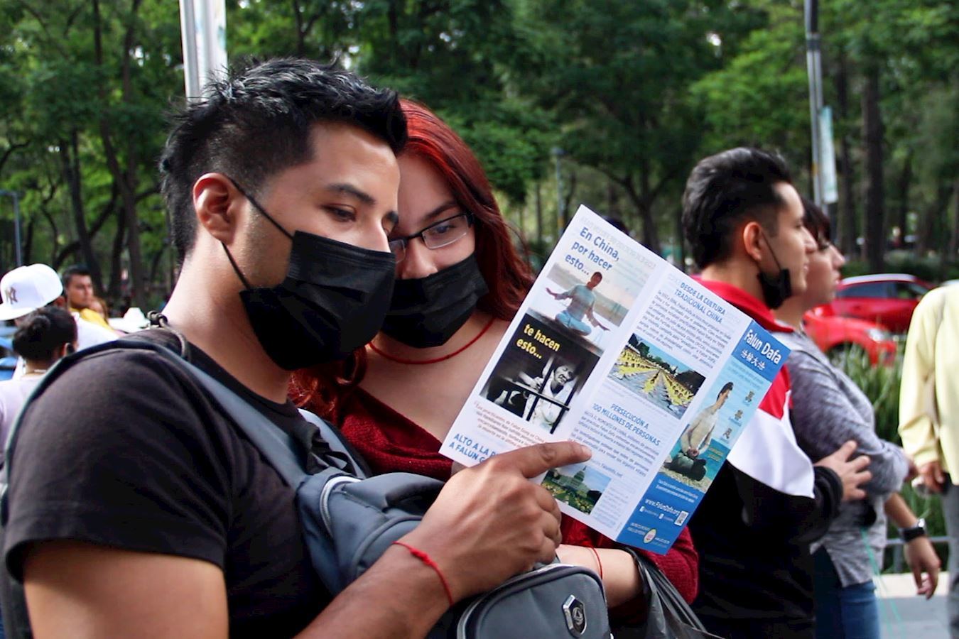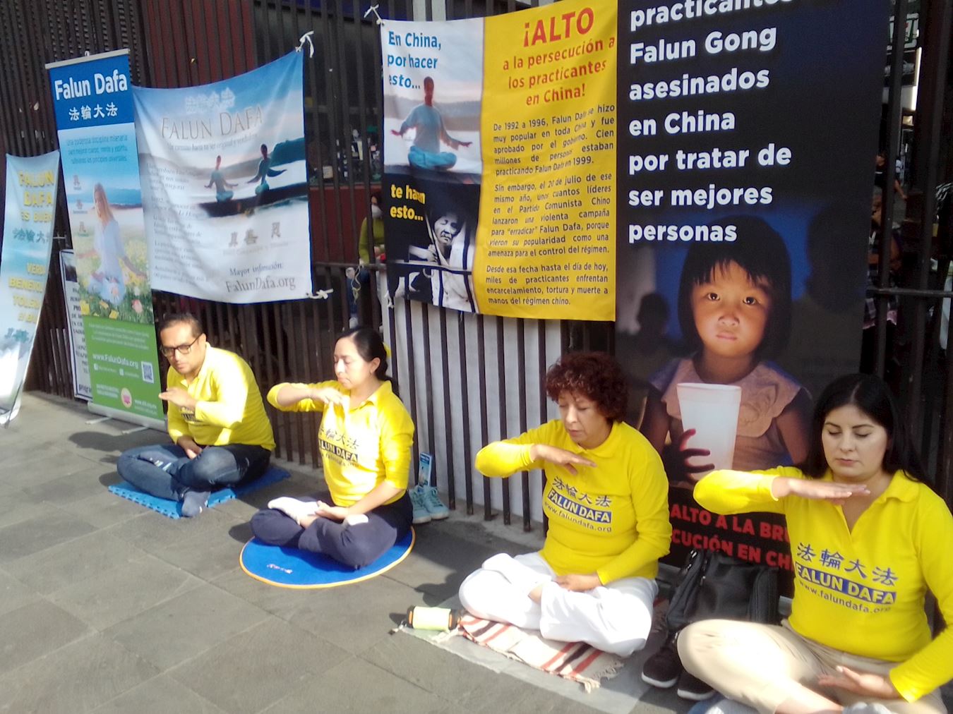 ![]() 图1~2:墨西哥法轮功学员在中领馆前发正念 |