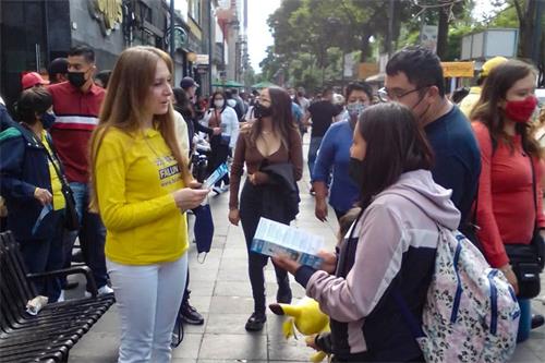 随后,法轮功学员前往墨西哥城历史中心进行功法示范,同时向路人发放资料,讲述法轮功在中国遭受的迫害。当地法轮功学员还与民众分享了修炼的美妙,表演了腰鼓舞,受到民众的喜爱。