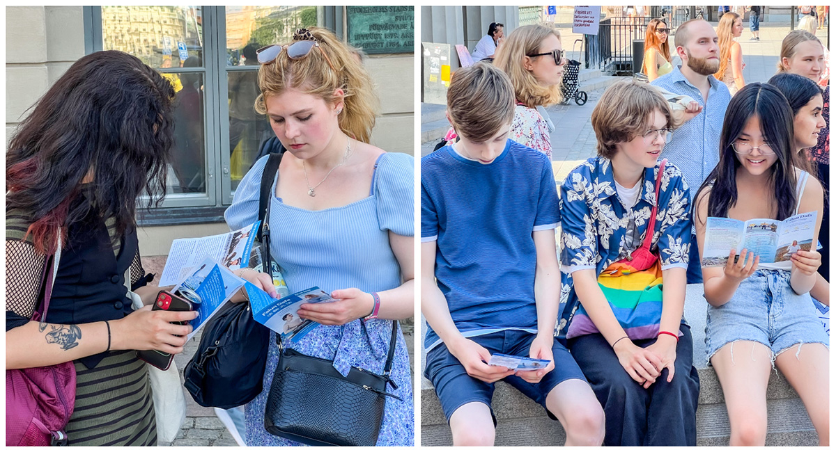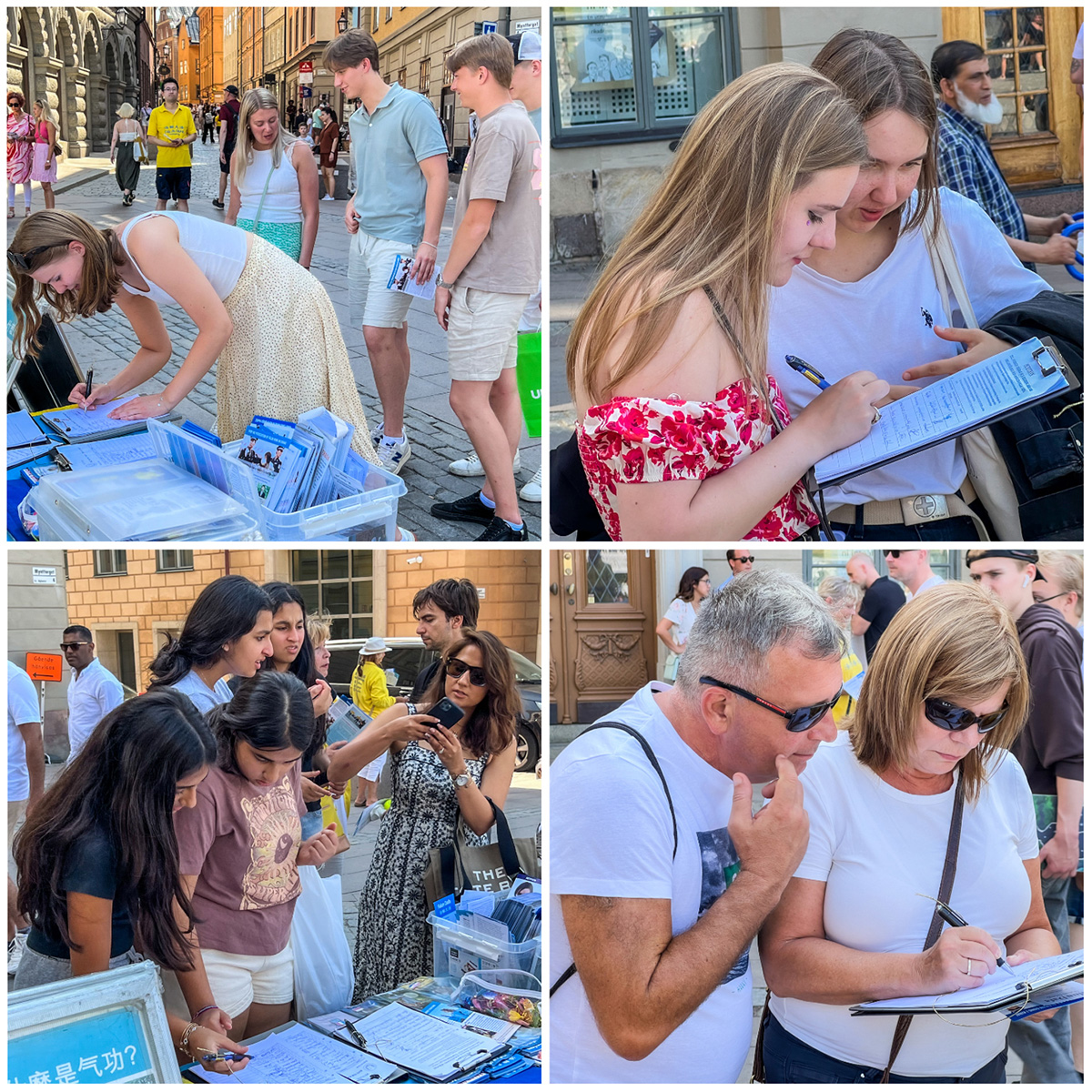 ![]() 图8~9:瑞典民众驻足了解法轮功真相,明白真相后签名支持反迫害。 |