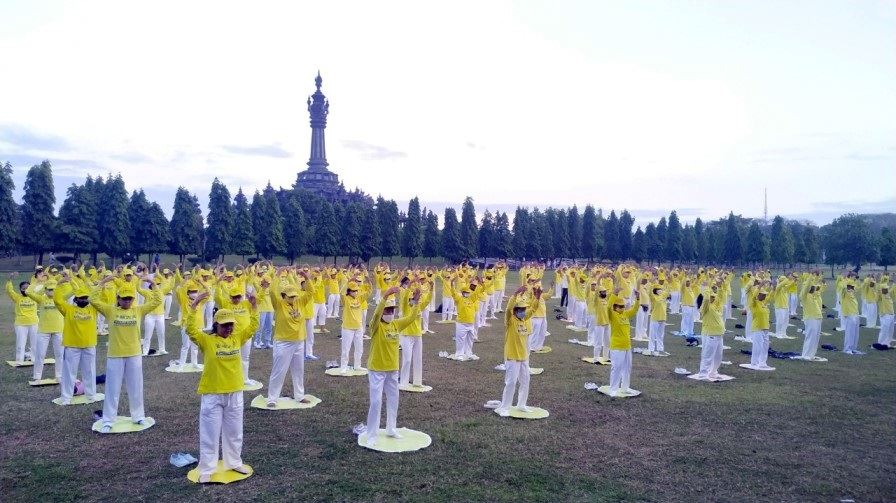 位于登巴刹RENON的尼提曼陀罗(Niti Mandala)广场,清晨时,身穿黄色衬衫的法轮功学员来到这里,优美的音乐伴随着炼功动作,气氛柔雅祥和,部份学员或向行人分发法轮功真相传单,或征集签名支持停止迫害。