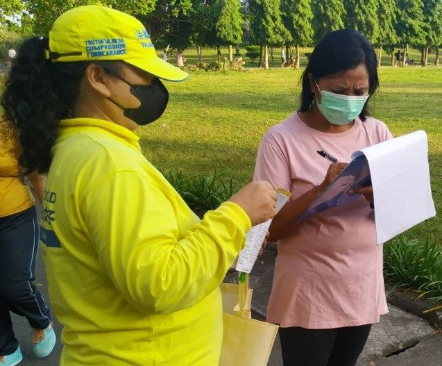 法轮功学员长期向世人讲述中共政权迫害法轮功学员,告诉人们要能看清中共邪党的残酷和暴戾,呼吁民众抛弃邪恶、支持正义、选择光明的未来,同时呼吁各界声援停止迫害。