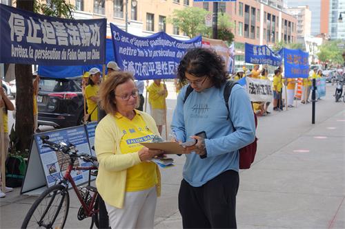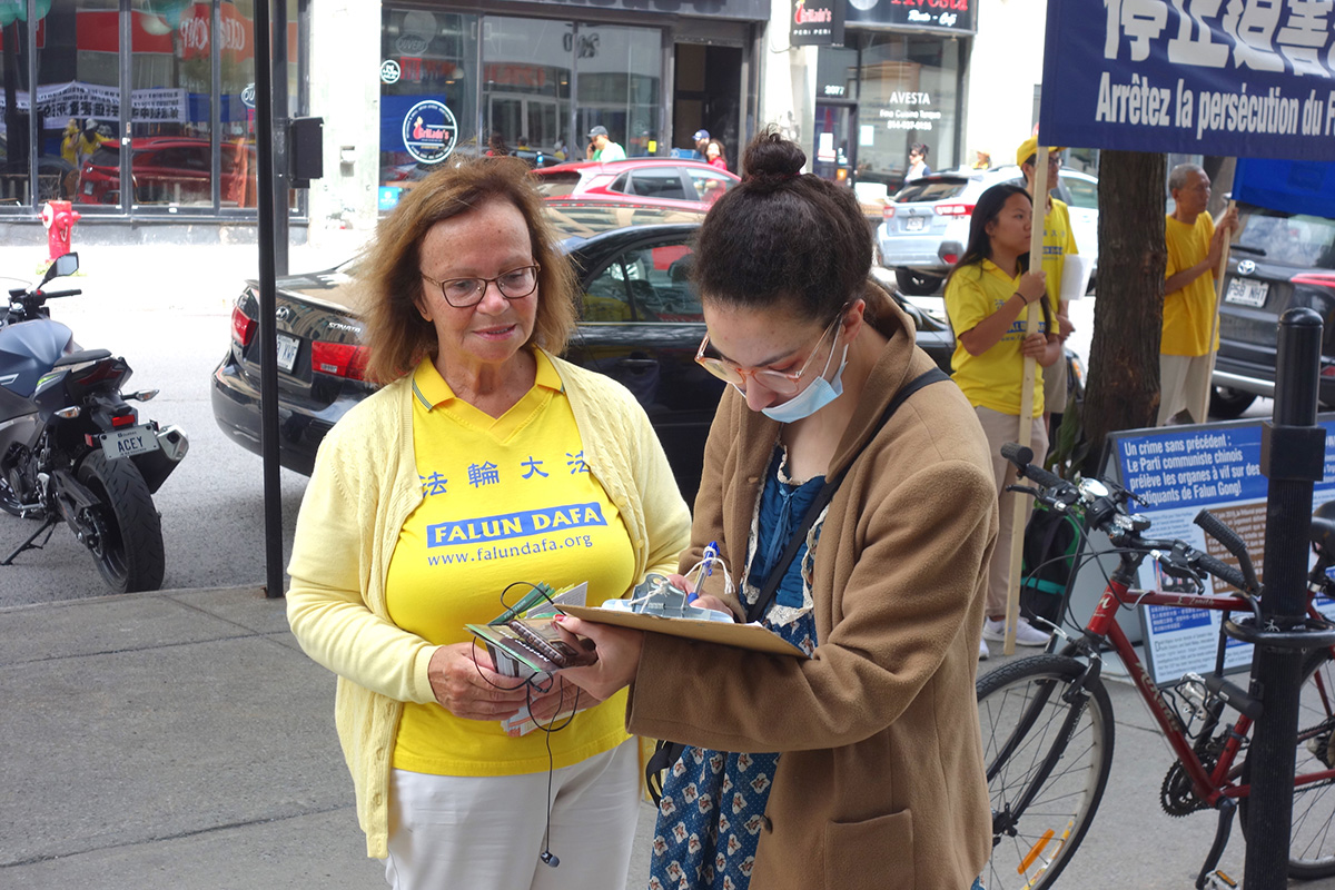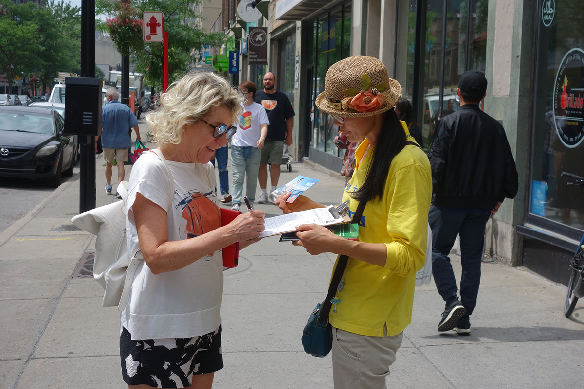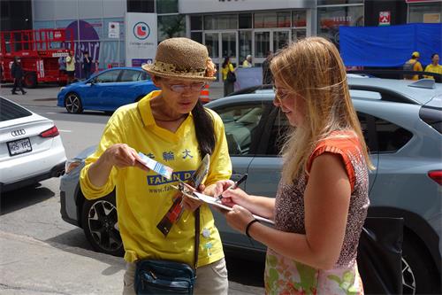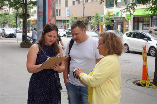 集会过程中,不断有民众前来了解情况,明白真相后他们纷纷在呼吁停止迫害法轮功的征签信上签名,表达支持。
