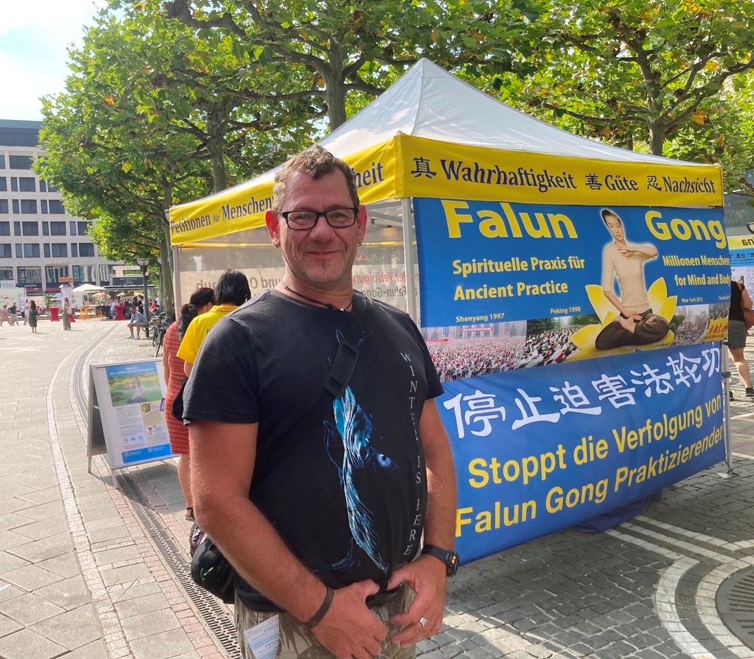 马力欧·费歇 (Mario Fischer)在机场工作,在信息台上第一次了解到中共迫害法轮功的信息。他二话不说在征签表上签了名,呼吁终止活摘器官,结束中共。对于中共持续了二十三年的残酷迫害,而在西方还有很多人不知道,他说:“这让我感到痛心。这里的媒体没有报道应该报道的事件。”他建议法轮功学员说:“好人要自己组织起来,可能目前还挺困难,(在中国)有严厉的管控。但这一天也会到来。”