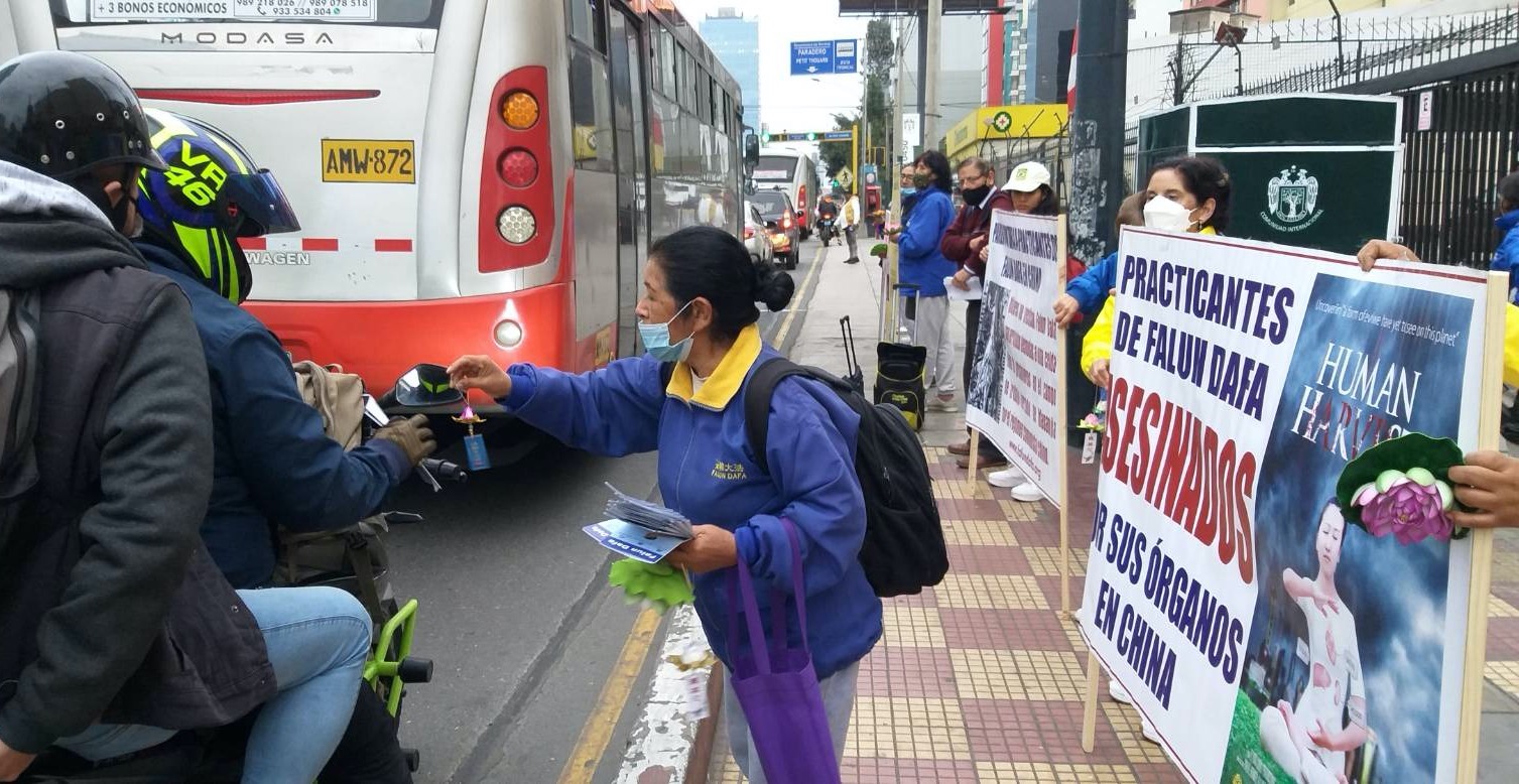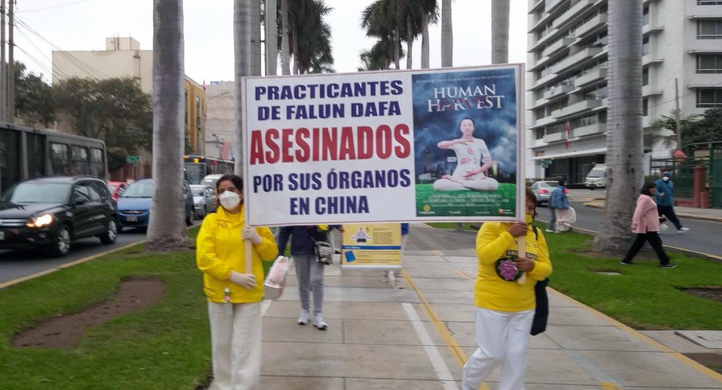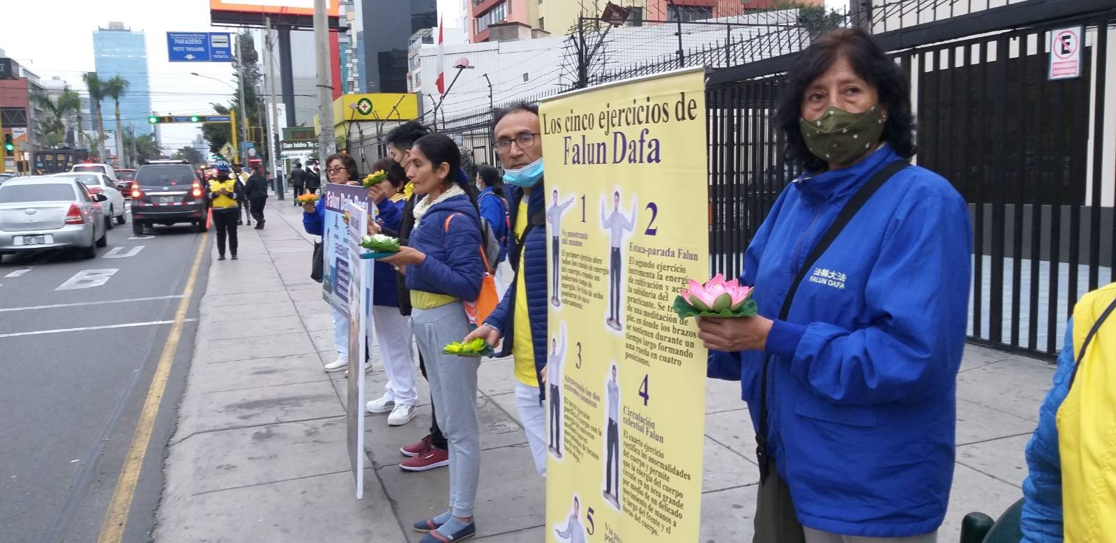 当天,学员们手举“停止迫害法轮功”和“法轮大法好”等真相标语,沿着主要干道阿雷基帕大道(Av. Arequipa)行进,沿途吸引了许多路人和汽车司机的注意。学员们给过往路人和司机散发真相传单和小莲花,跟大家介绍什么是法轮功,以及信仰真、善、忍的好人为什么会遭到中共的残酷迫害。许多人认真听学员讲述真相后,跟学员说:加油,不要放弃,我们支持你们。