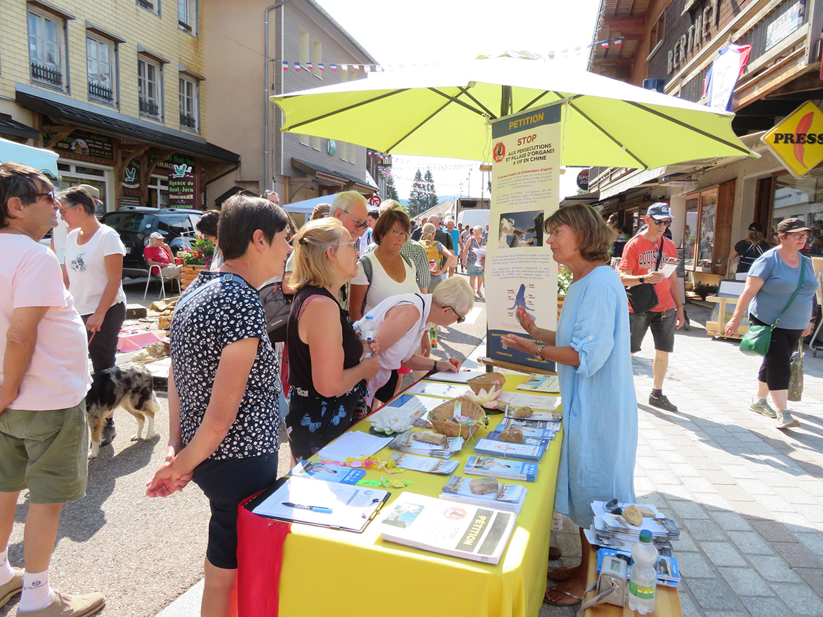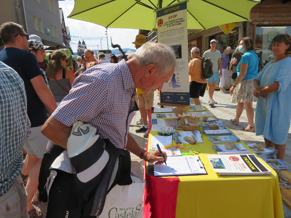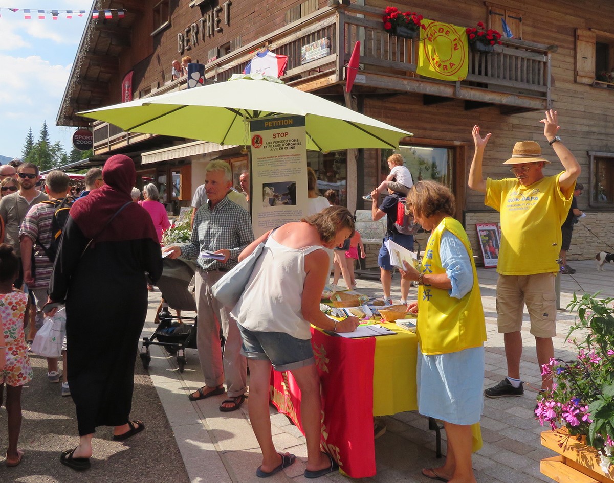 卢斯(Les Rousses)位于汝拉(Jura)山脉高处,海拔1107米,在瑞士边境,有著名的滑雪站。这里空气清新,夏季游人很多。八月五日,在卢斯市中心集市上,法轮功学员向游人介绍法轮功真相。听闻真相后的很多民众在征签表上签字,支持法轮功反迫害。