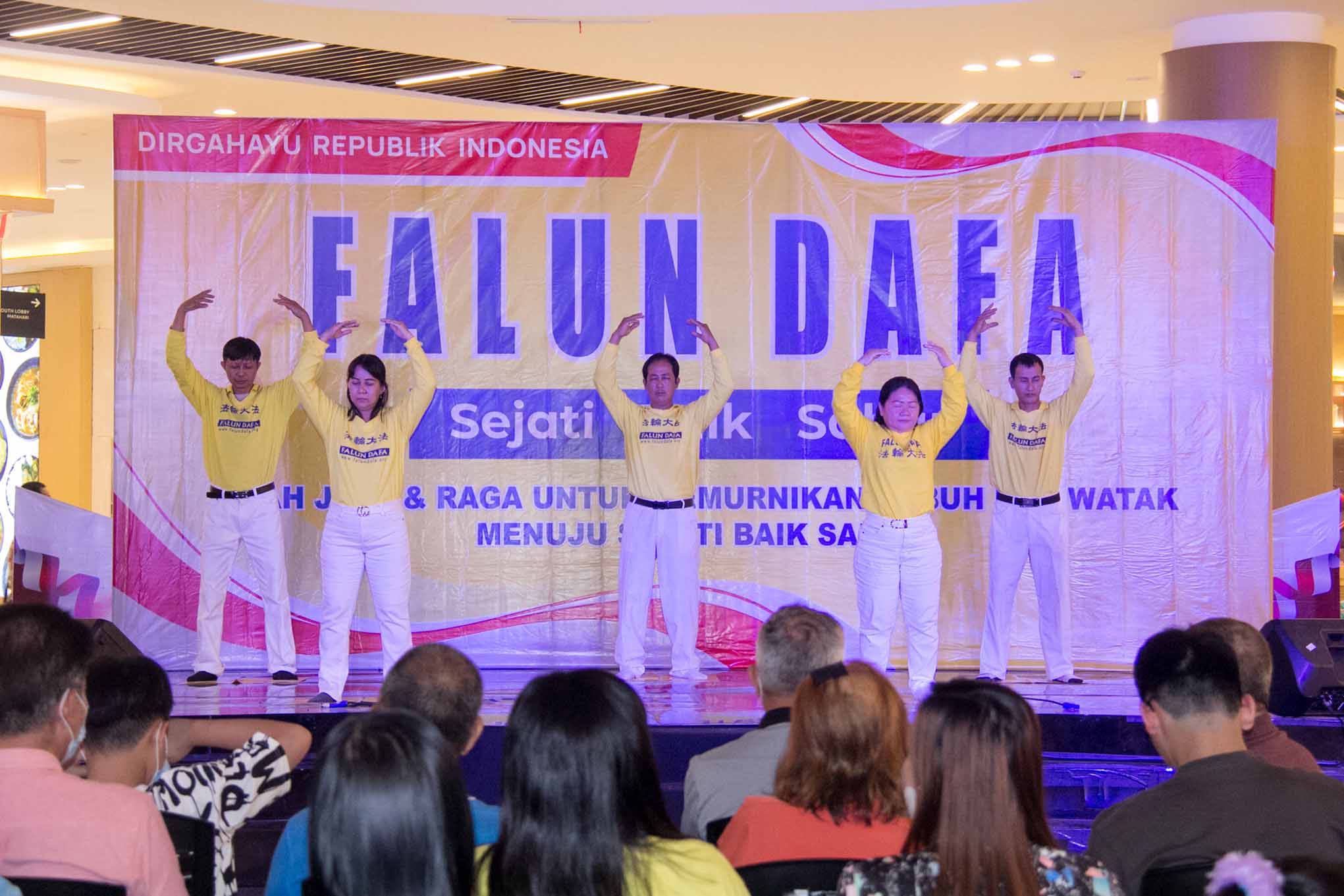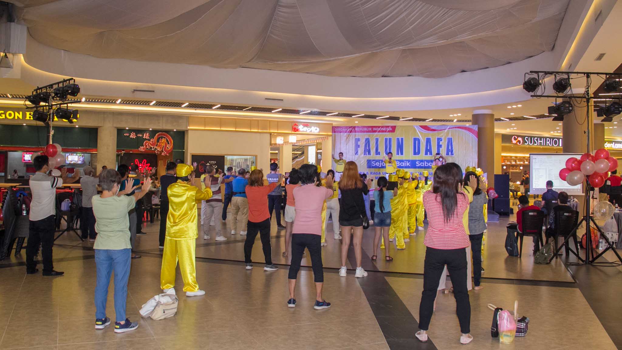 ![]() 图1:巴淡岛学员在One Batam Mall 购物商场展示法轮大法功法 |