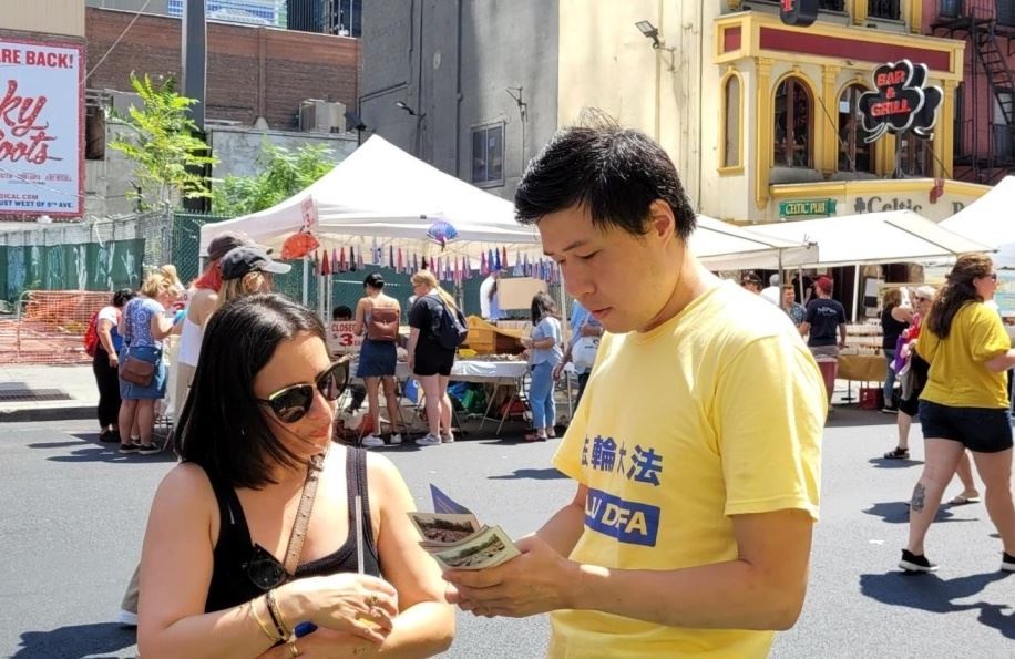 纽约法轮功学员借此机会,在这个繁华都市集中展示法轮大法的功法,向人们介绍法轮大法的功法功理。虽然天气出奇的炎热,但是挡不住人们渴望了解法轮功的热情。