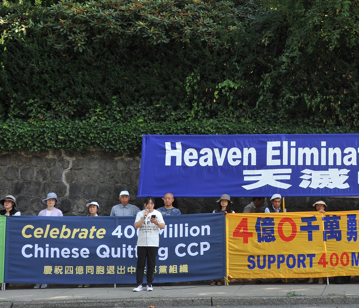 全球退党服务中心义工代表王女士在集会上发言中说:“中共一直对真相严密封锁、疯狂打压。很多义工在打真相电话的时候,经常会遇到民众说电话被监控,不敢听真相。或者说不敢退出中共啊。就是在这样的严封狠打的情况下,现在已经有四亿中国人退出了中共,不得不说是一个人间神迹,三退是和平解体中共的过程。”