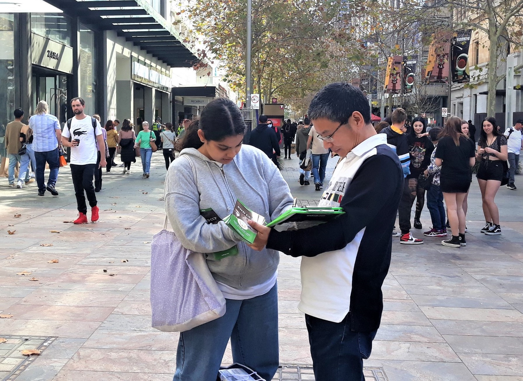 来自不丹的卡玛(Karma)和澳洲本地人本(Ben)在集会现场驻足观看良久,并在反迫害征签簿上签了名。卡玛说:“从这次活动中,我认识到,中国人和中共不是一回事,这打开了我的视野。中国人和我们一样,追求自由幸福,而中共政府在控制人,这是我从这次活动中了解到的。”