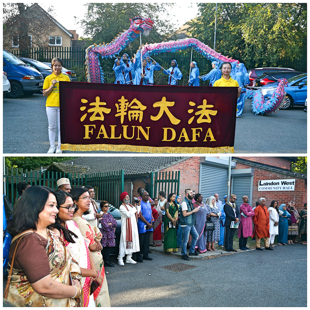 ![]() 图1:二零二二年八月二十一日,英国的部份法轮功学员应邀参加比邻伦敦东部的巴西尔登市南亚艺术月的庆祝活动。图为,法轮功学员组成的舞龙队在表演。 |