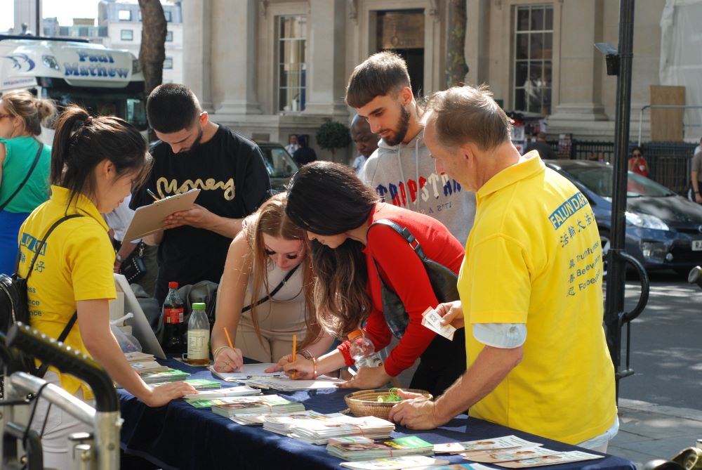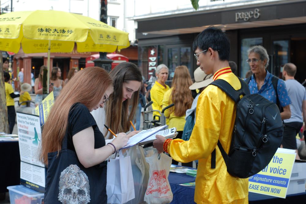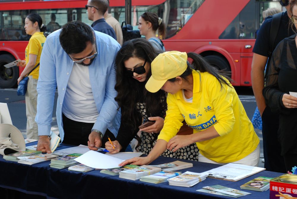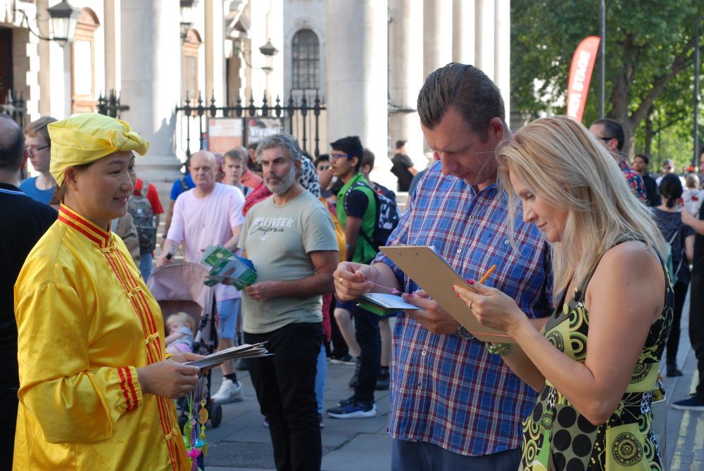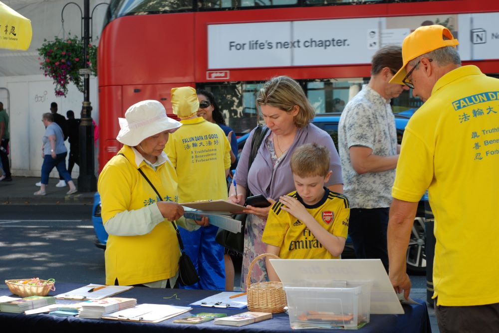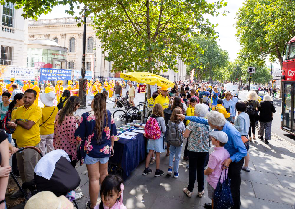 长期坚持在大英博物馆讲真相的梁女士也分享了一个故事:有位五十岁的中国男士走到桌前主动拿资料,交谈中得知他是位外科医生,我和他讲真相,他说我支持你们,共产党就是坏就是邪恶,八九年的六四我参加了,在大陆,这手机看不到真消息,他说,现在了解真相渠道也越来越多样化,在我看来,这三十年来,在所有追求民主自由的团体中,法轮功是做的最好的,因为你们有信仰。