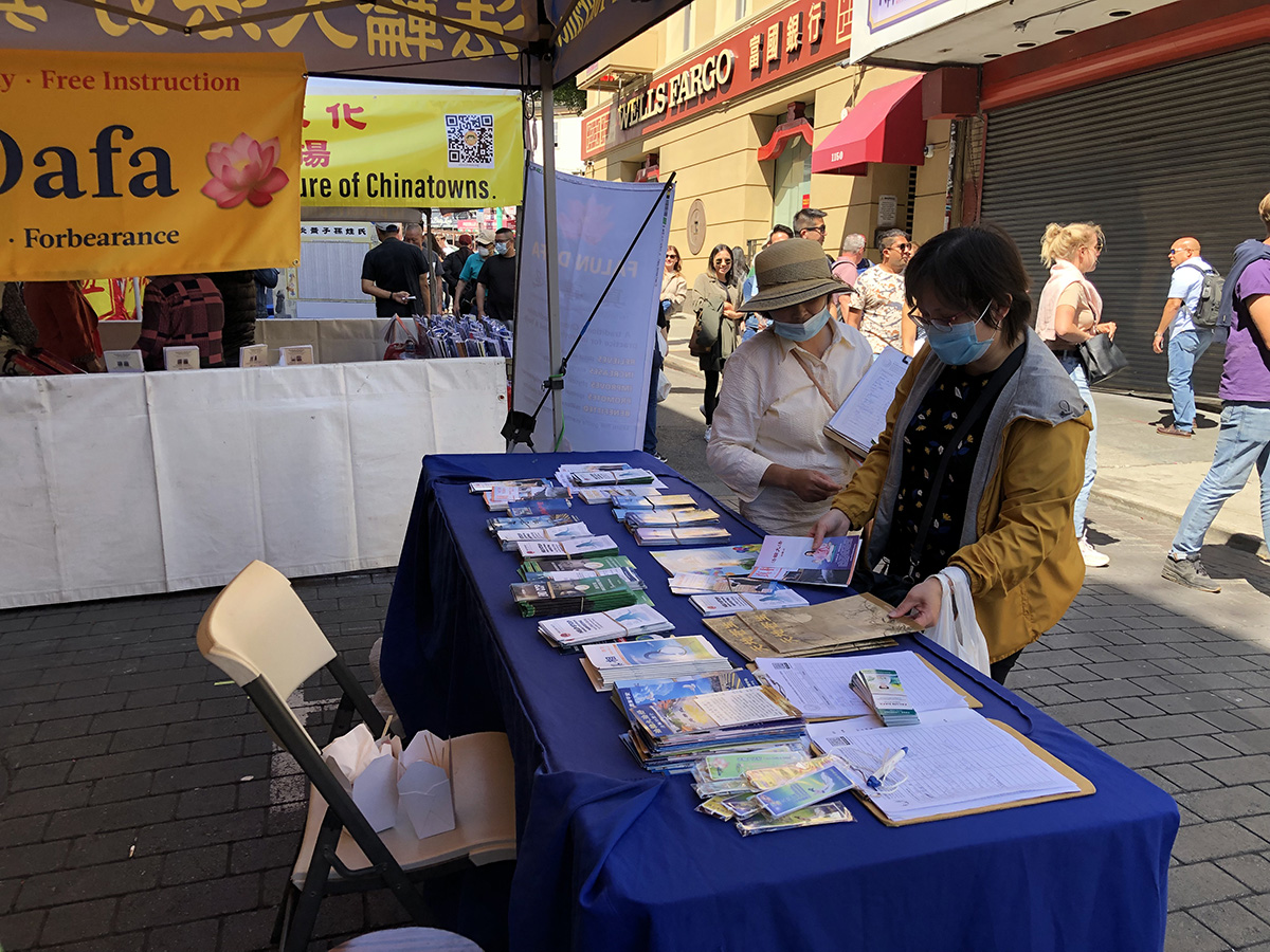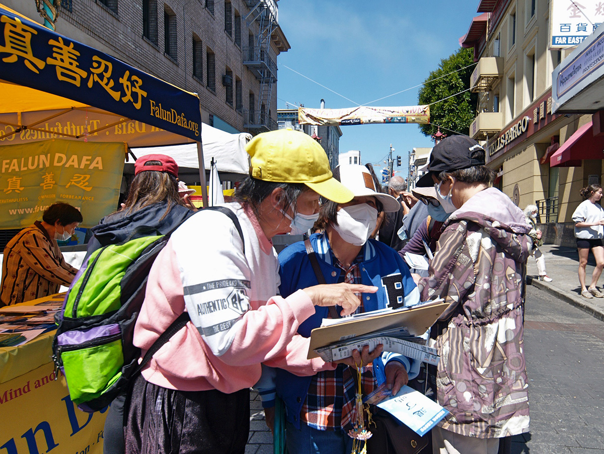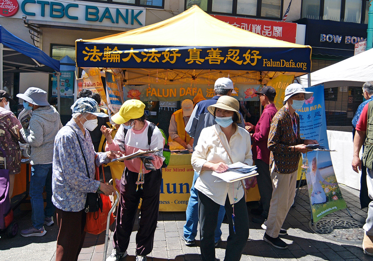 ![]() 图3~7:二零二二年八月二十七日和二十八日,旧金山湾区的法轮功学员在旧金山华埠中秋街会上设立摊位,传播法轮功的真相,并帮助华人三退。二十七日,有五十六位华人三退。 |