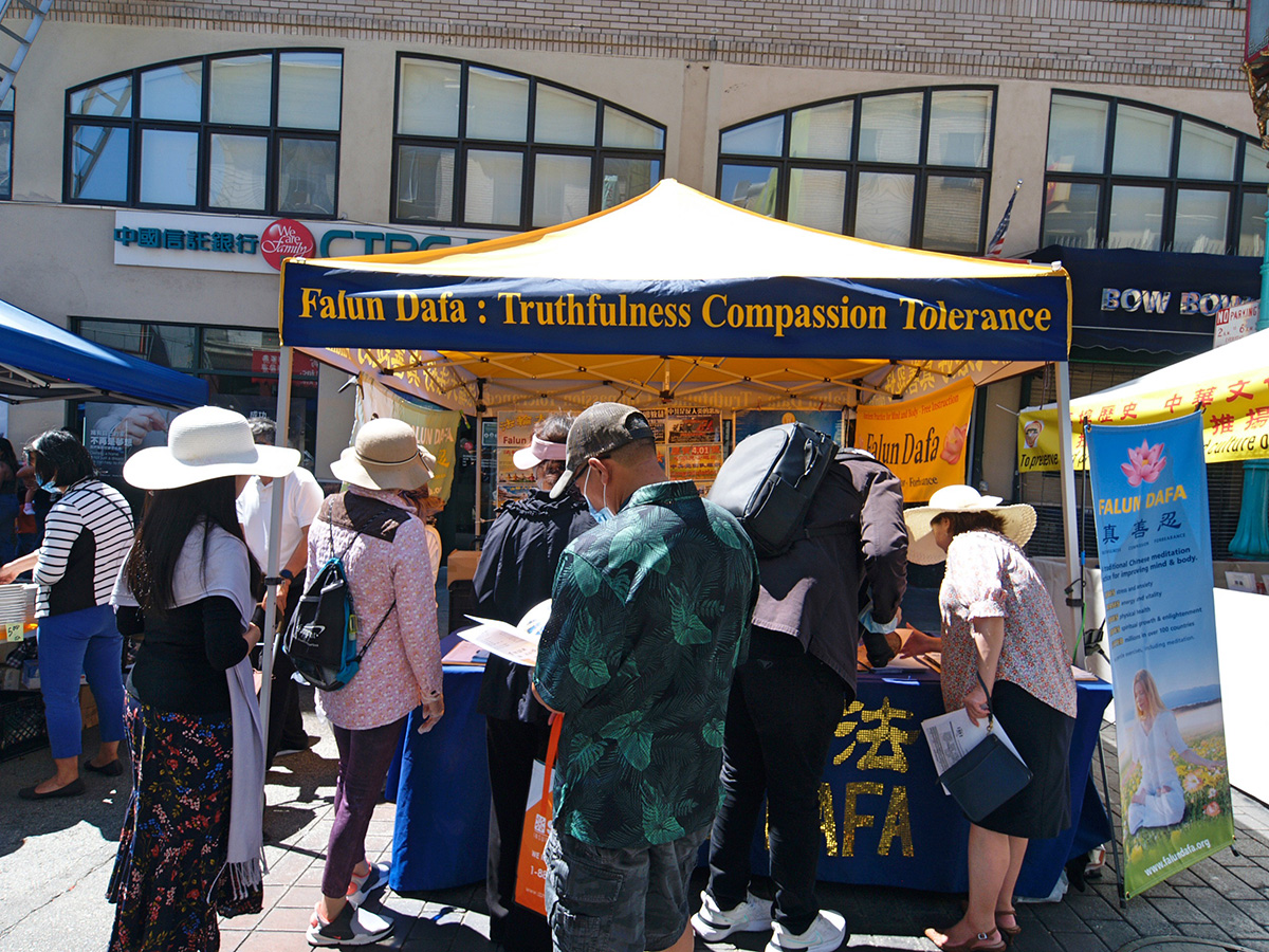 ![]() 图1~2:二零二二年八月二十七日和二十八日,旧金山湾区的法轮功学员在旧金山华埠中秋街会上设立摊位,传播法轮功的真相,和帮助华人三退。二十七日,有五十六位华人三退。 |