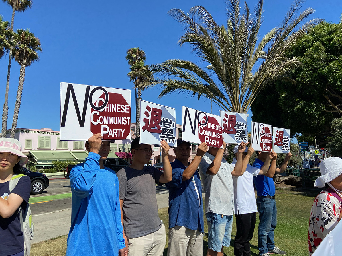 ![]() 图1~3:二零二二年八月十四日,洛杉矶退党服务中心在著名景点圣莫妮卡海滩集会,祝贺四亿中国人“三退”。 |