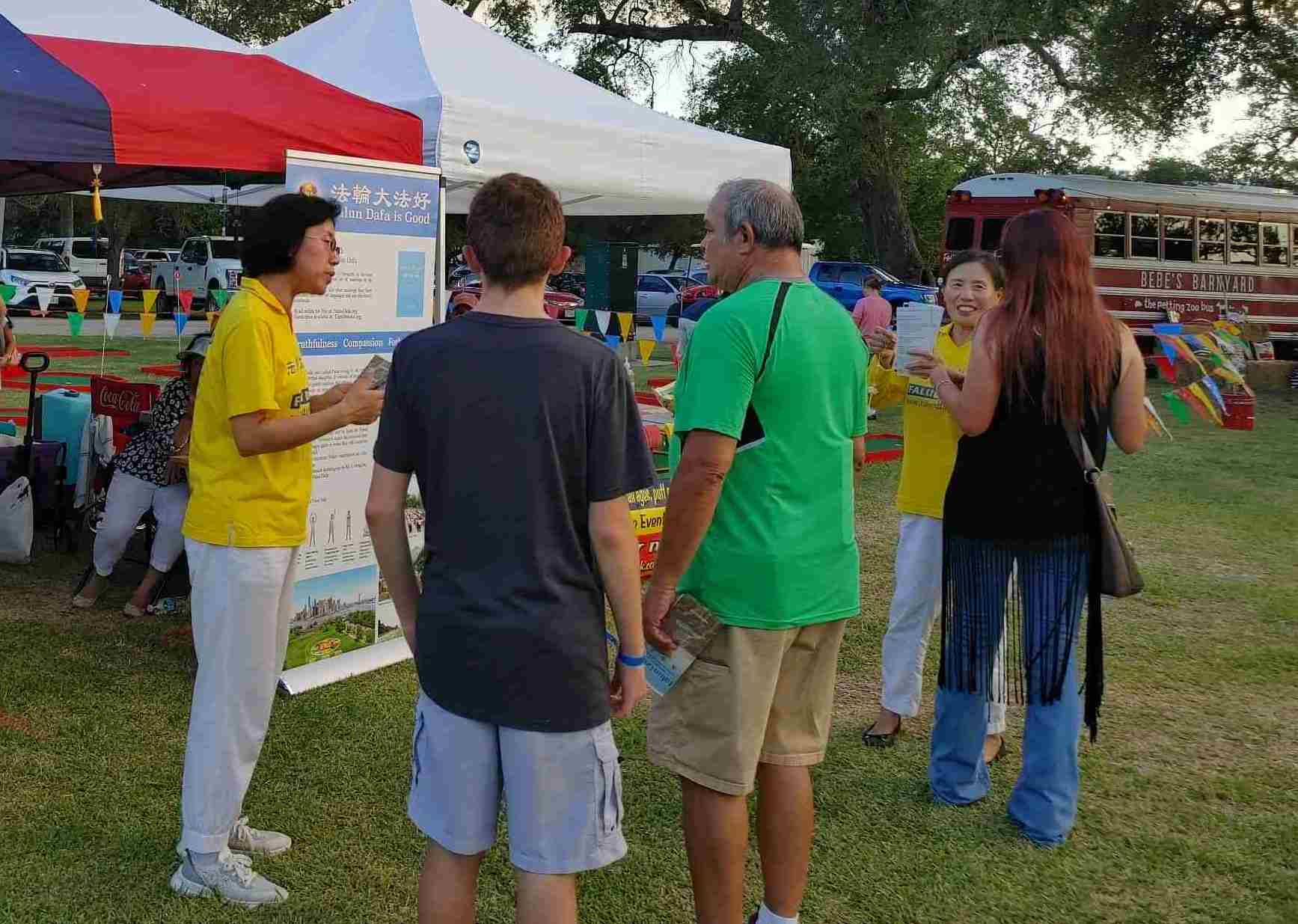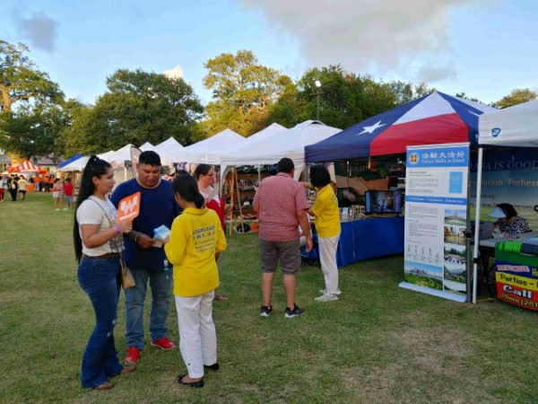 在文化节上大约有数百个展位,他们大多来自当地或周边地区,也有少数是从其它州赶来的。部份法轮功学员走访了这些展位,并给他们介绍了法轮功,发了传单,很多人都在反迫害的签名表上签名。