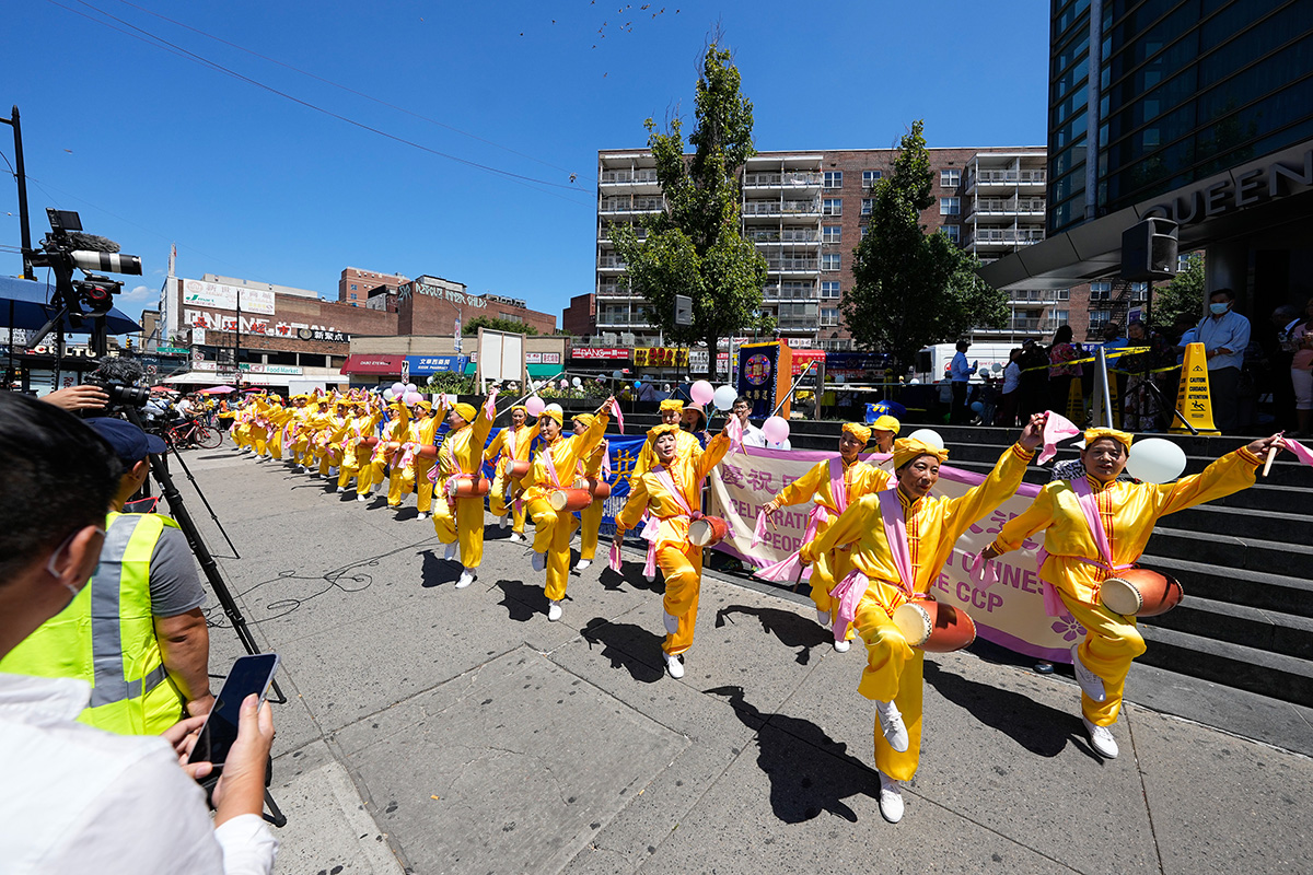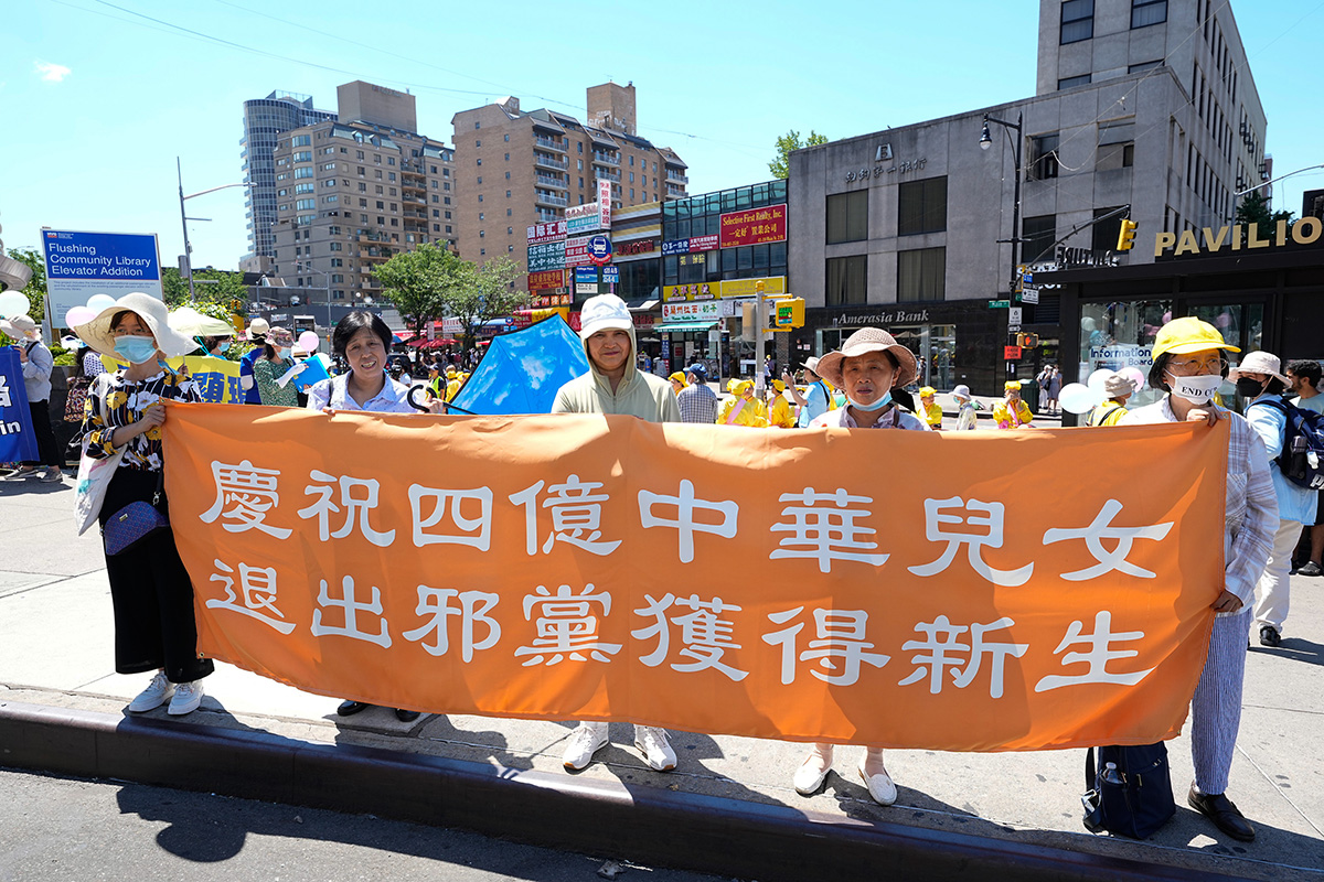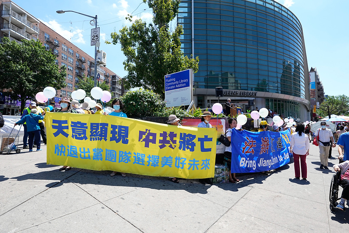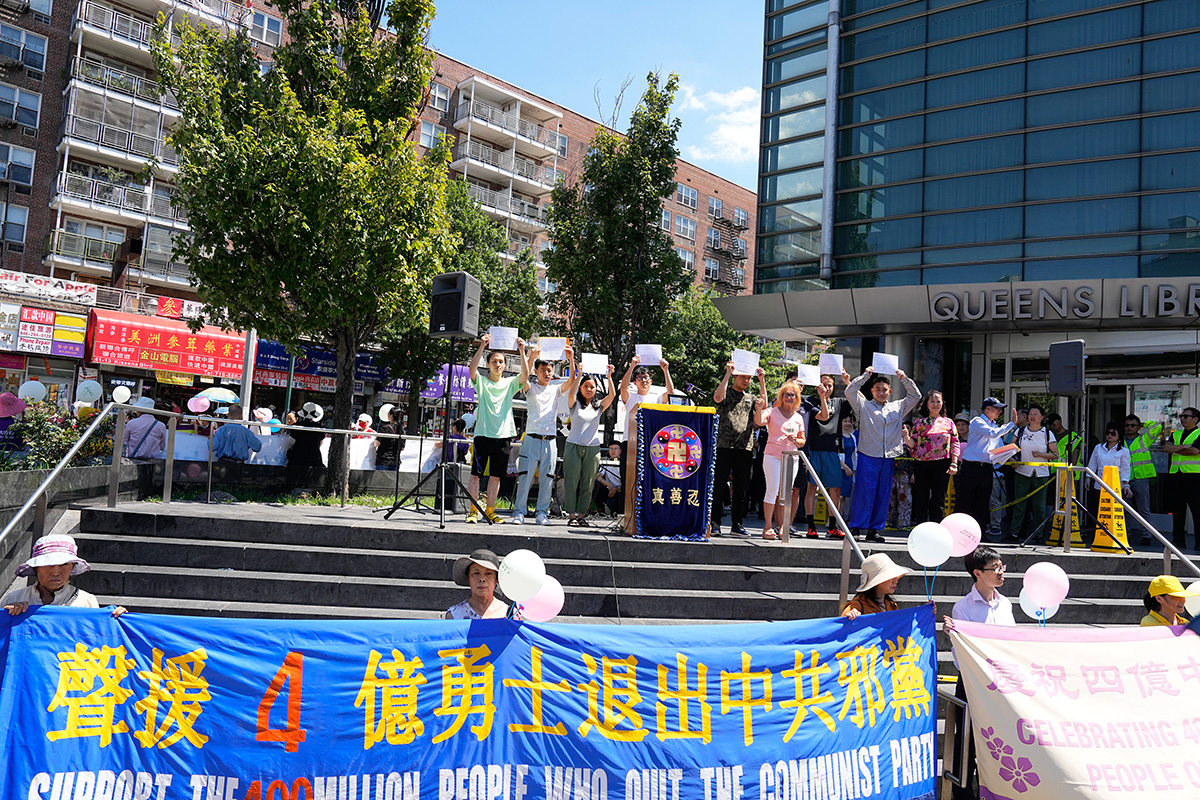 当日,法拉盛街头,车水马龙。图书馆前锣鼓喧天,人头攒动。退党义工、社会正义人士、社区领袖、现场公开退党人士等数百人参加了集会和庆祝活动,众多路人观看集会并表达声援。现场巨型横幅“声援4亿勇士退出中共邪党”,“庆祝4亿中国人退出中共”等横幅特别醒目。
