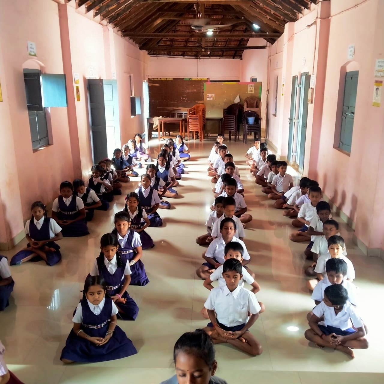 二零二二年八月五日,法轮功学员巴拉蒂造访学校,并教孩子们炼功。老师们请她每个星期六来教功。她信守承诺,并在接下来的两个星期六去学校教功。