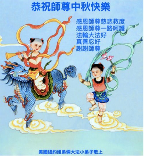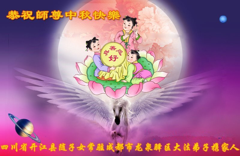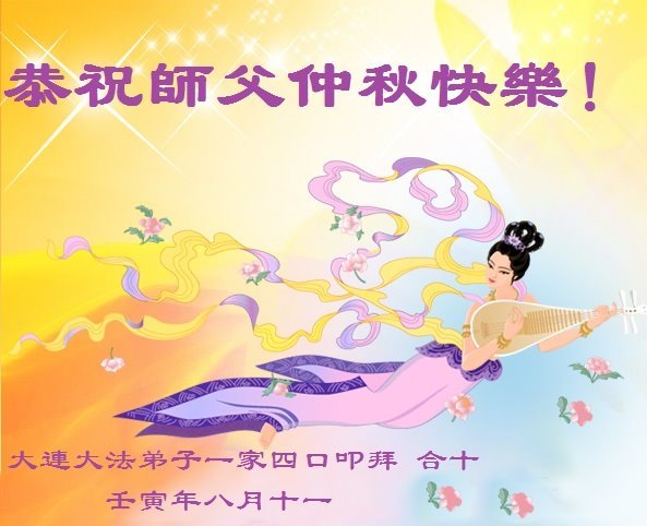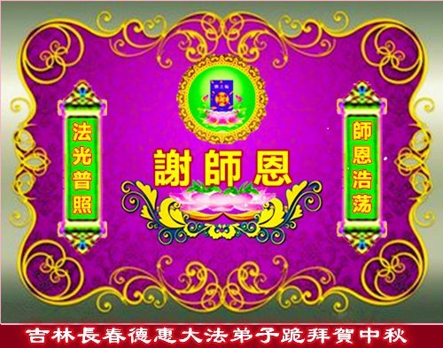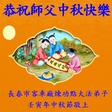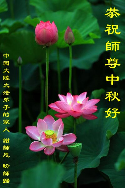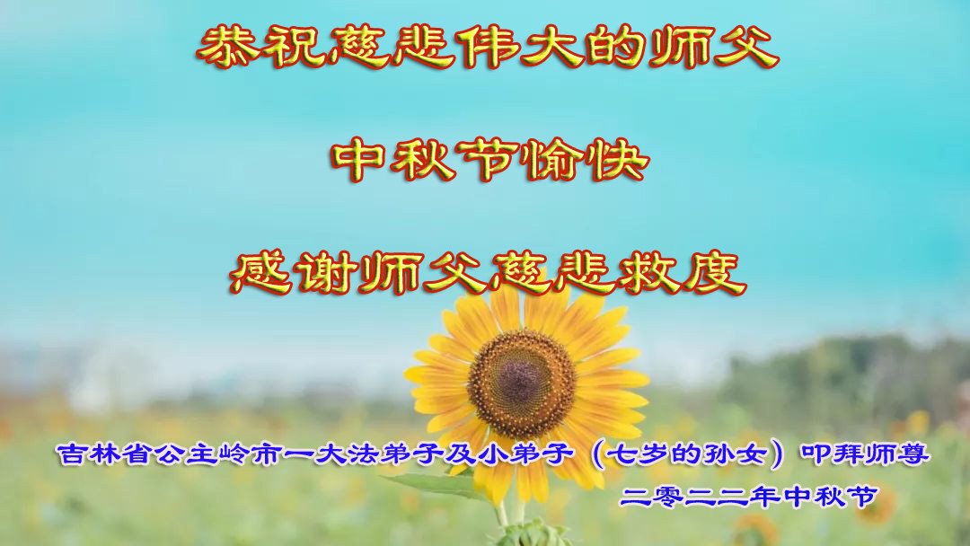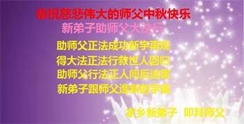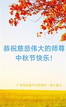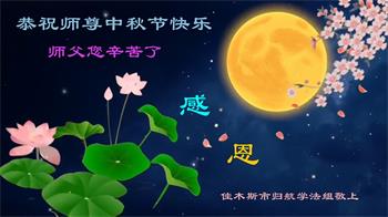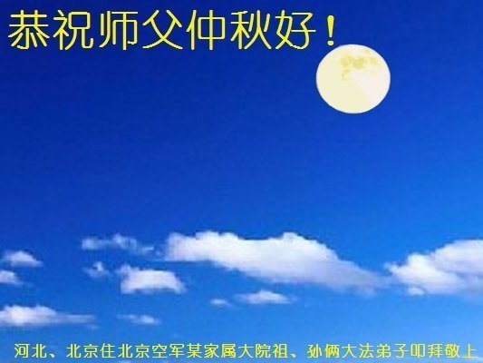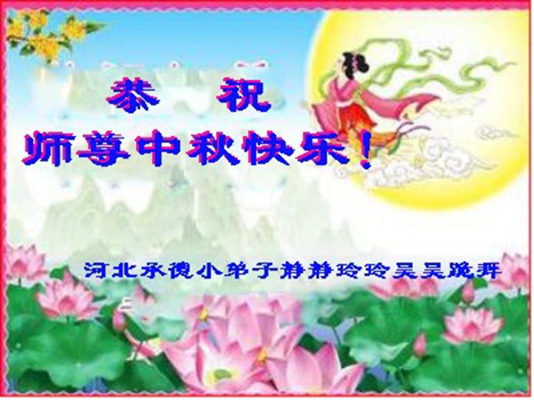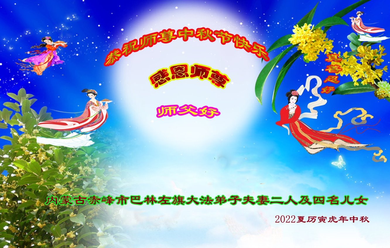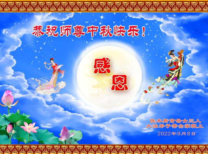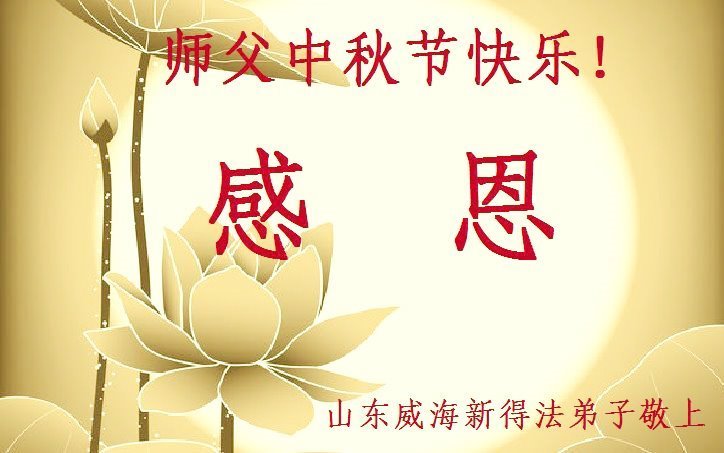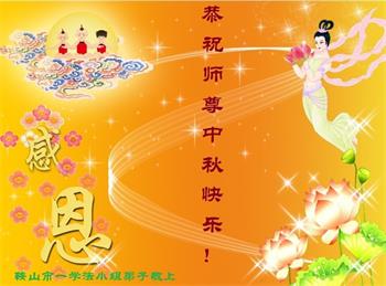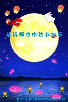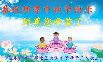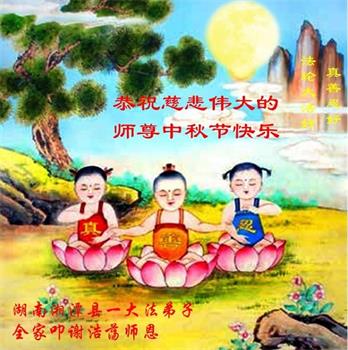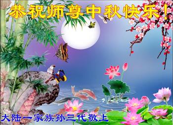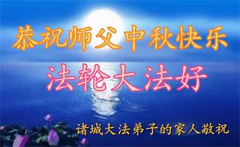 感谢师尊的无量慈悲!多次让陷入迷茫中的弟子回归正道,弟子叩谢师恩!在这举家团圆的日子里,弟子期盼师尊早日回到中国大陆与弟子团聚!3岁大法小弟子说:“恭祝师尊中秋节快乐!”