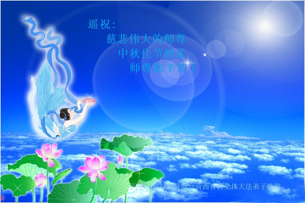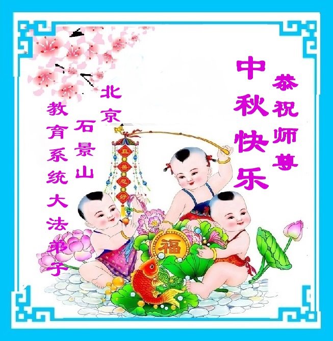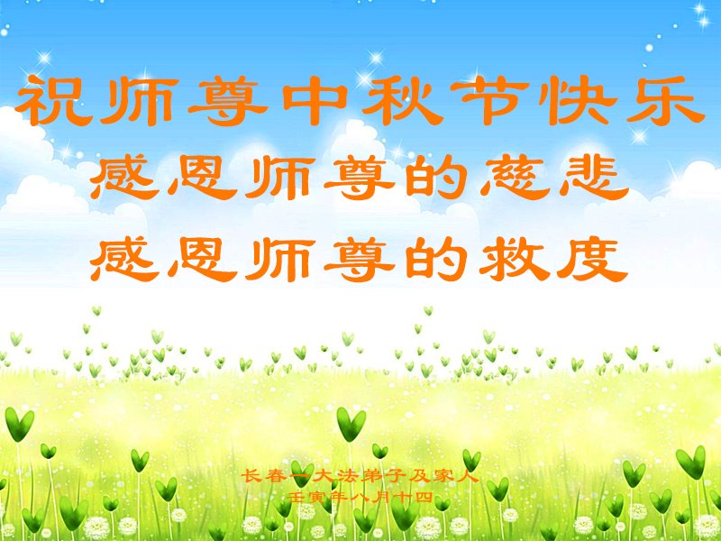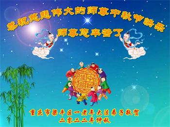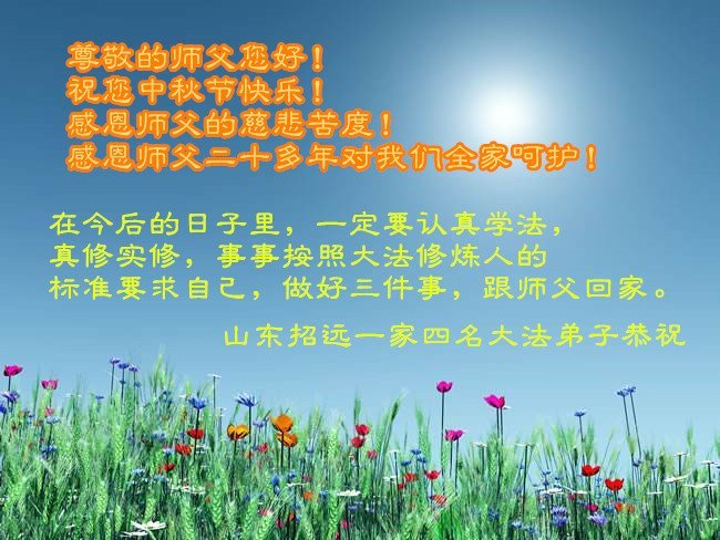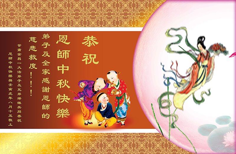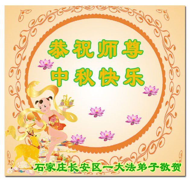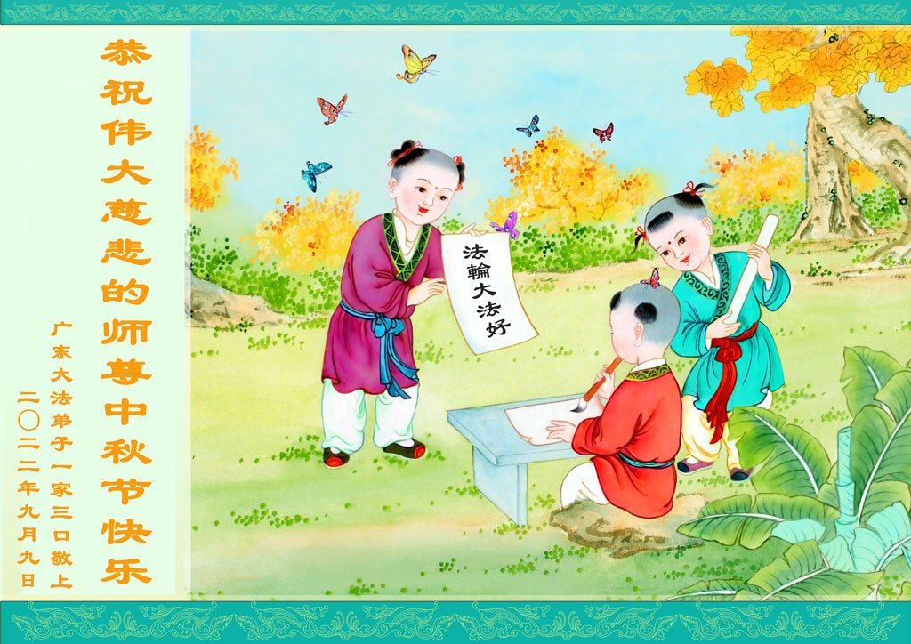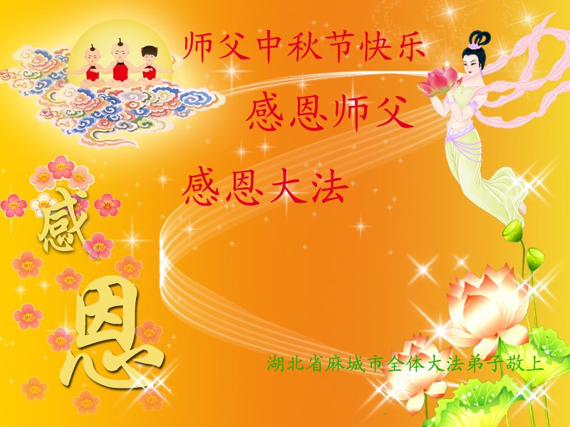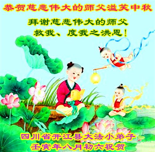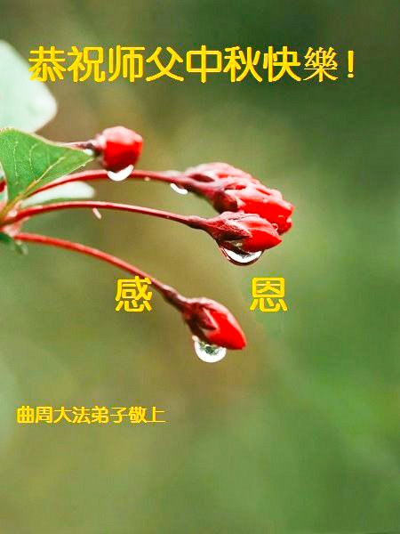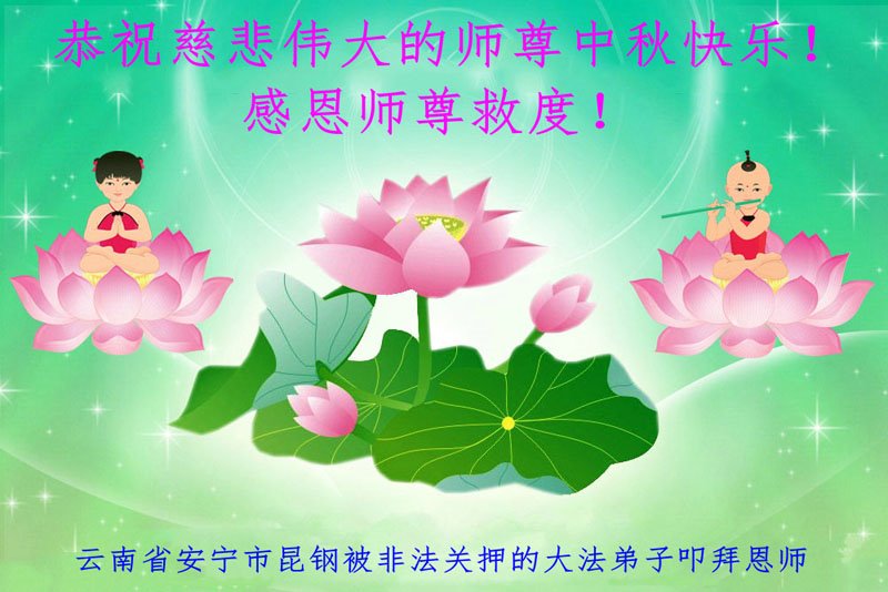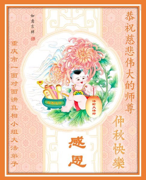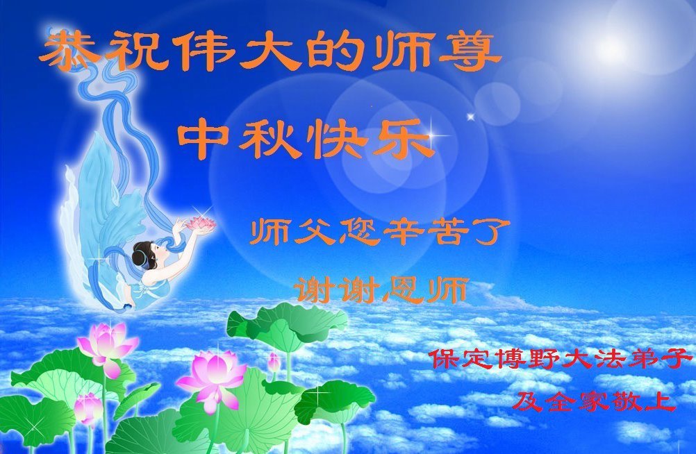 感谢师尊的无量慈悲!多次让陷入迷茫中的弟子回归正道,弟子叩谢师恩!在这举家团圆的日子里,弟子期盼师尊早日回到中国大陆与弟子团聚!3岁大法小弟子说:“恭祝师尊中秋节快乐!”