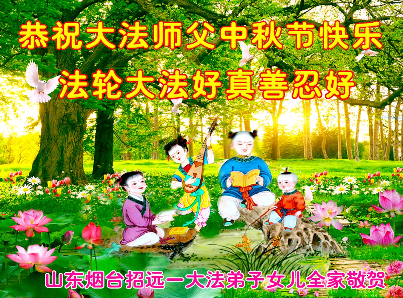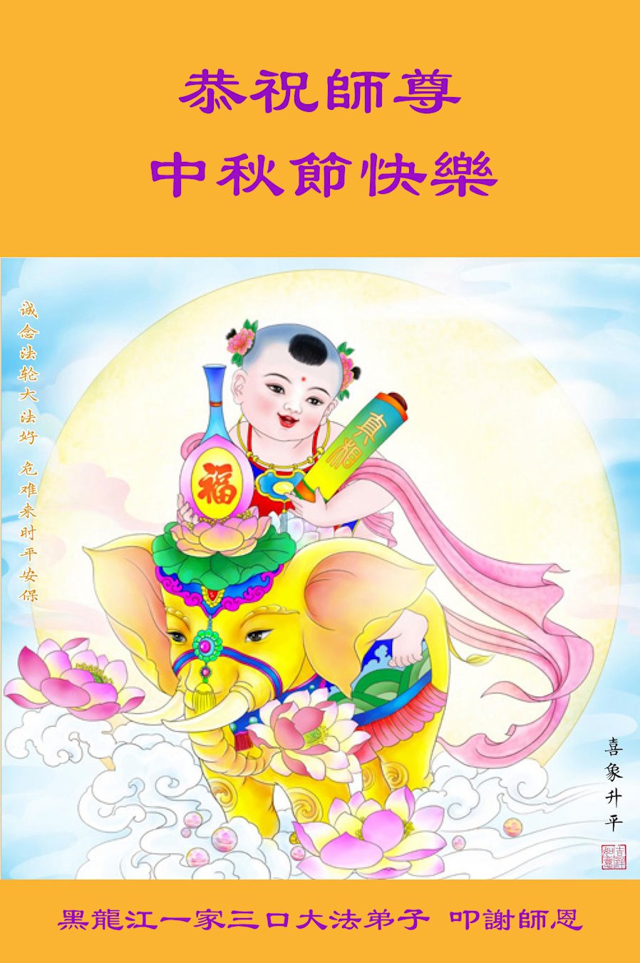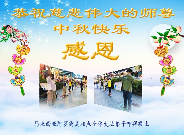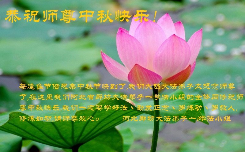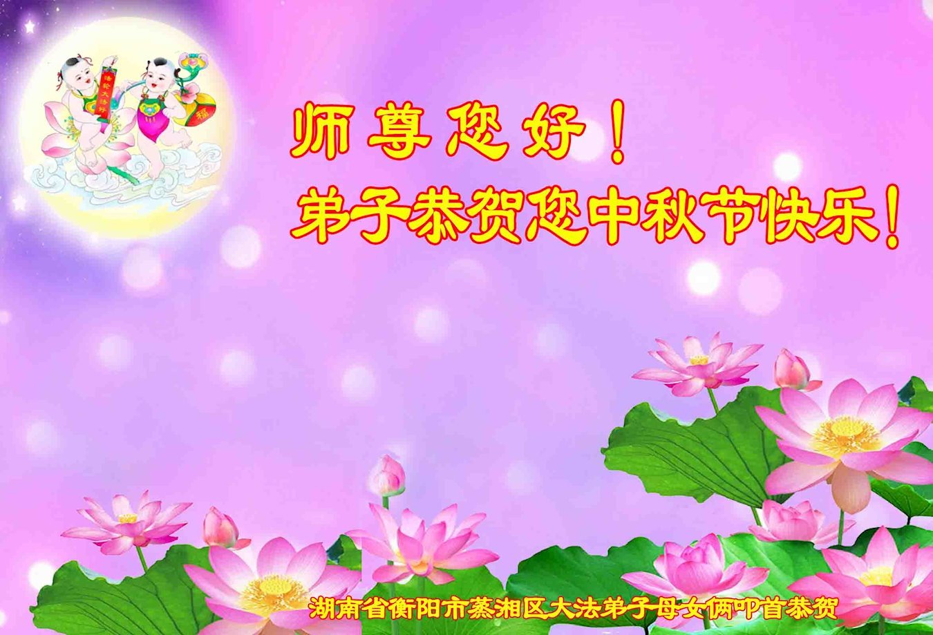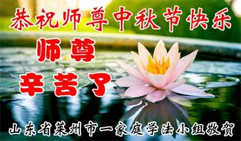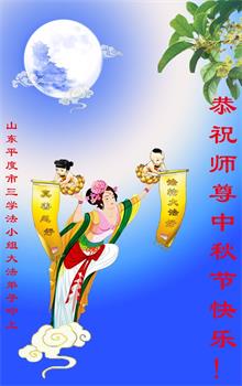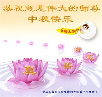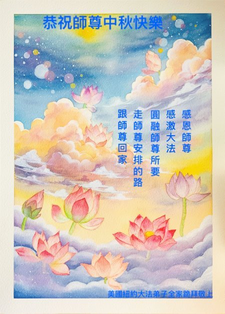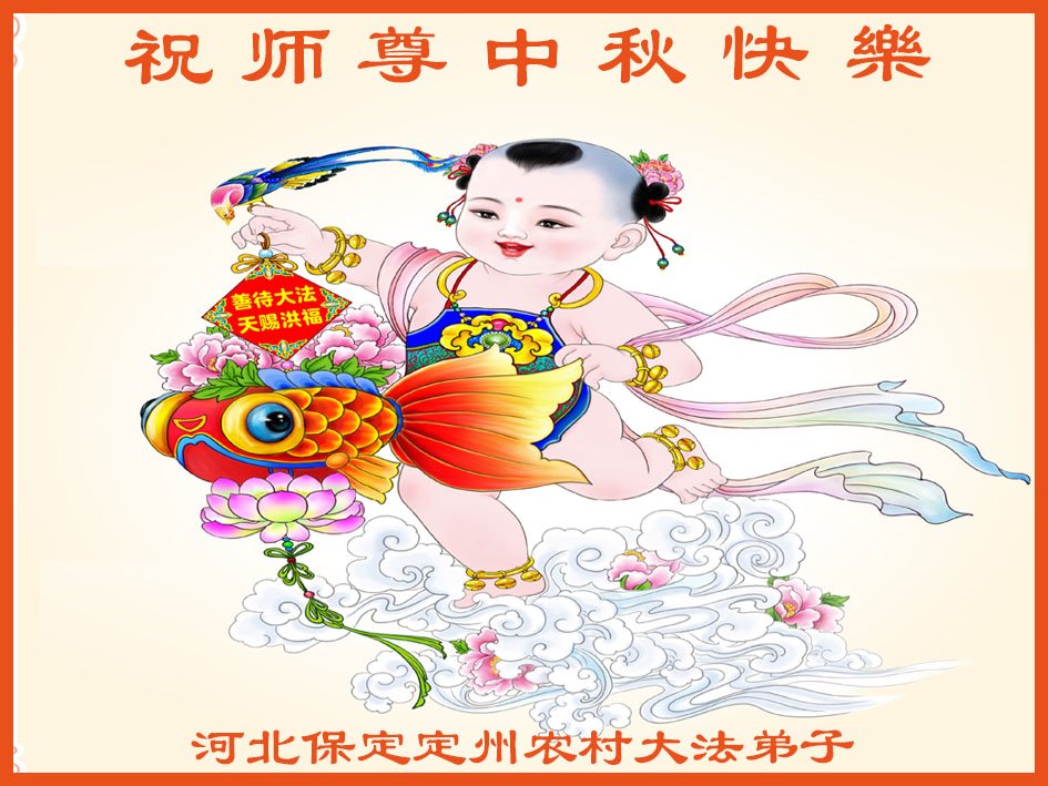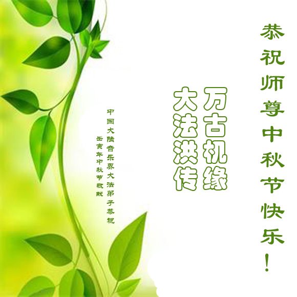 感谢师尊的无量慈悲!多次让陷入迷茫中的弟子回归正道,弟子叩谢师恩!在这举家团圆的日子里,弟子期盼师尊早日回到中国大陆与弟子团聚!3岁大法小弟子说:“恭祝师尊中秋节快乐!”