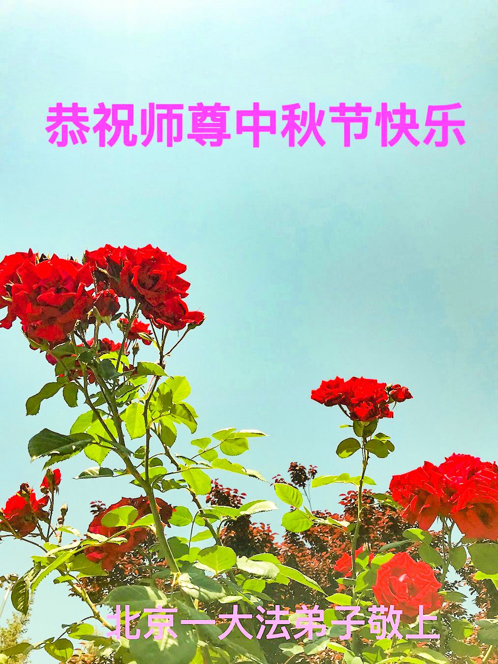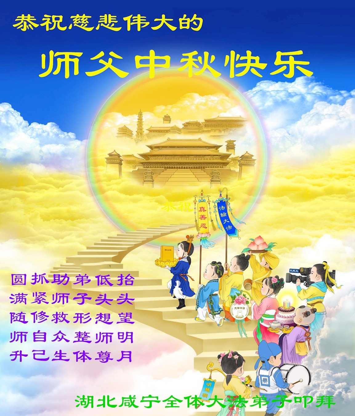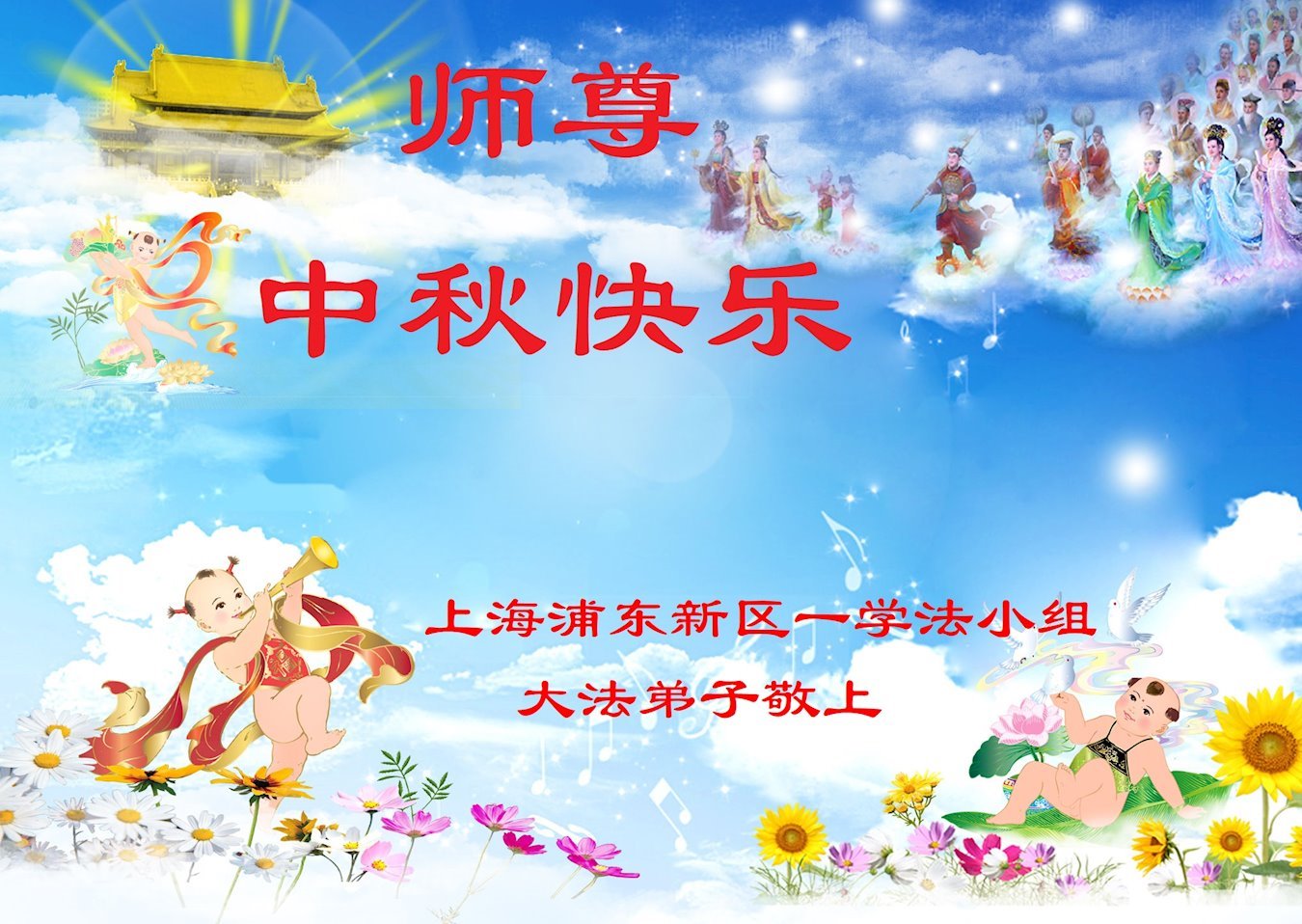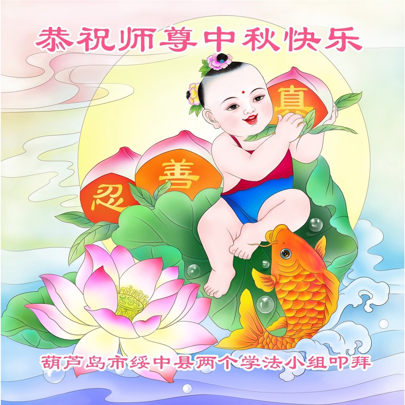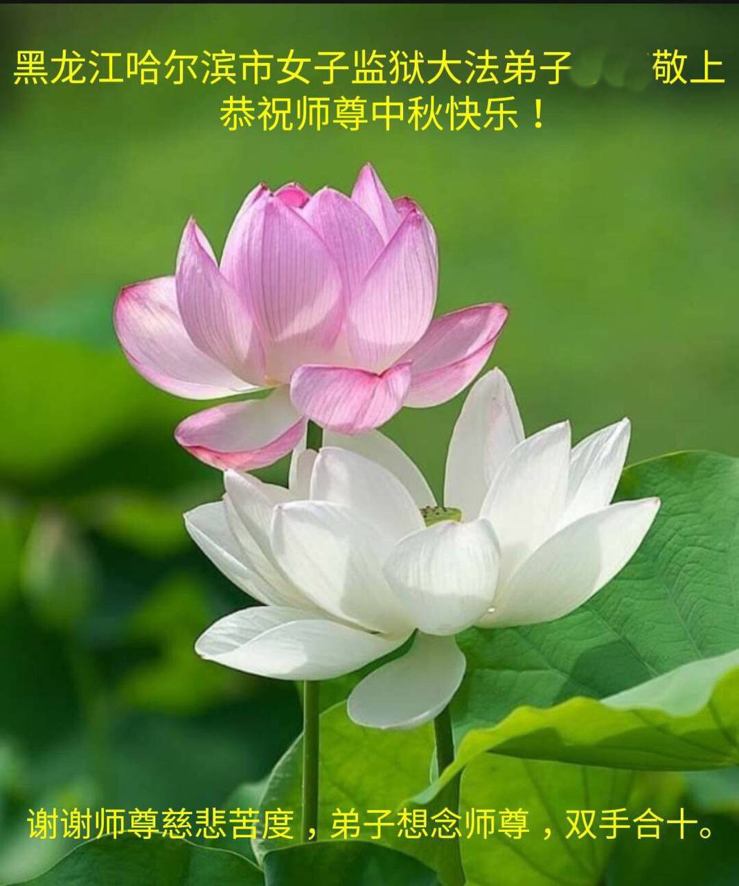 感谢师尊的无量慈悲!多次让陷入迷茫中的弟子回归正道,弟子叩谢师恩!在这举家团圆的日子里,弟子期盼师尊早日回到中国大陆与弟子团聚!3岁大法小弟子说:“恭祝师尊中秋节快乐!”