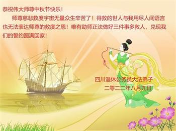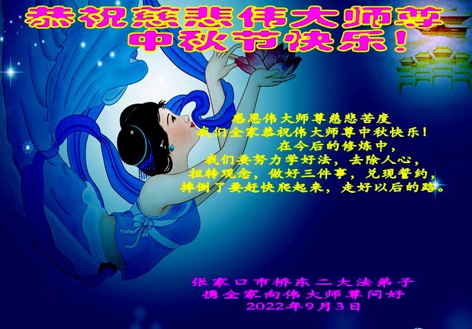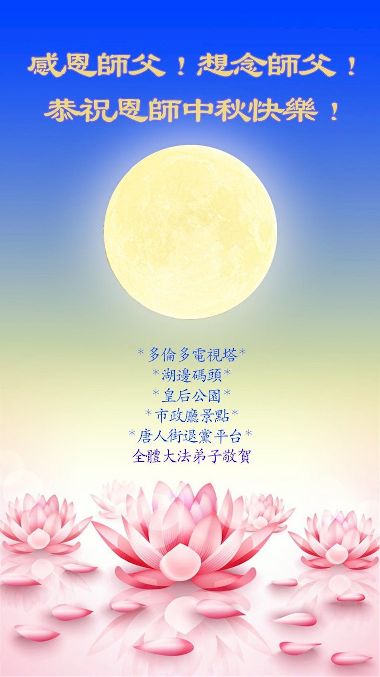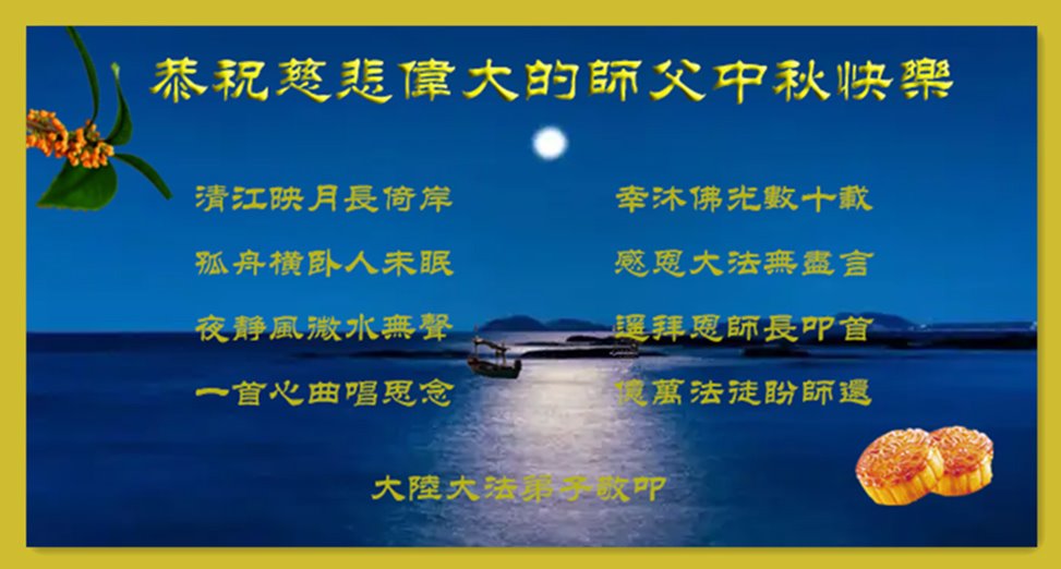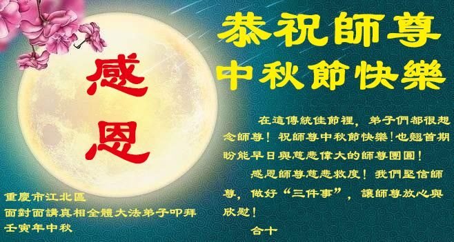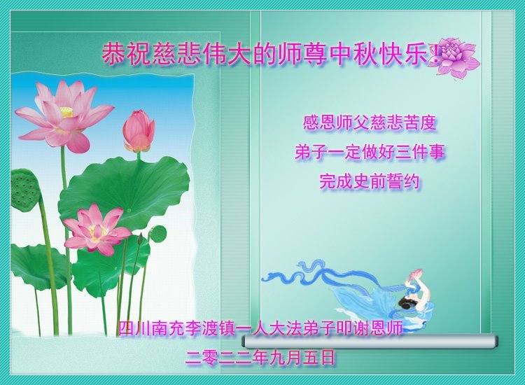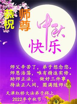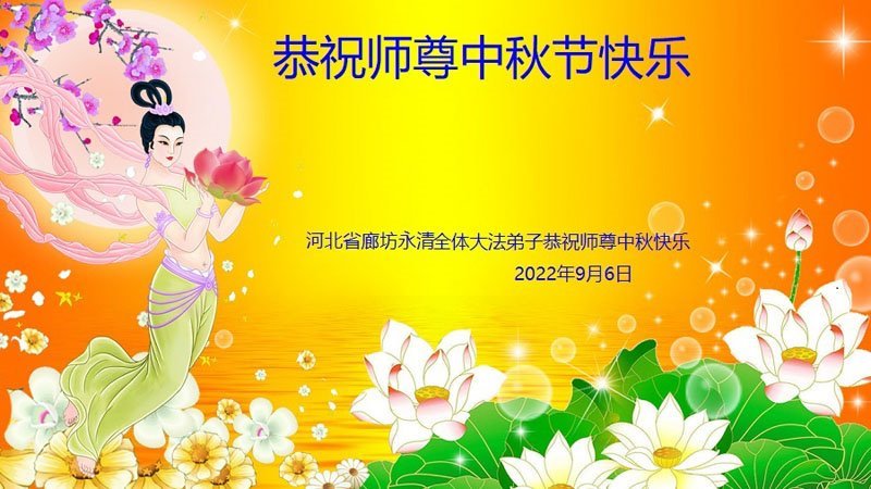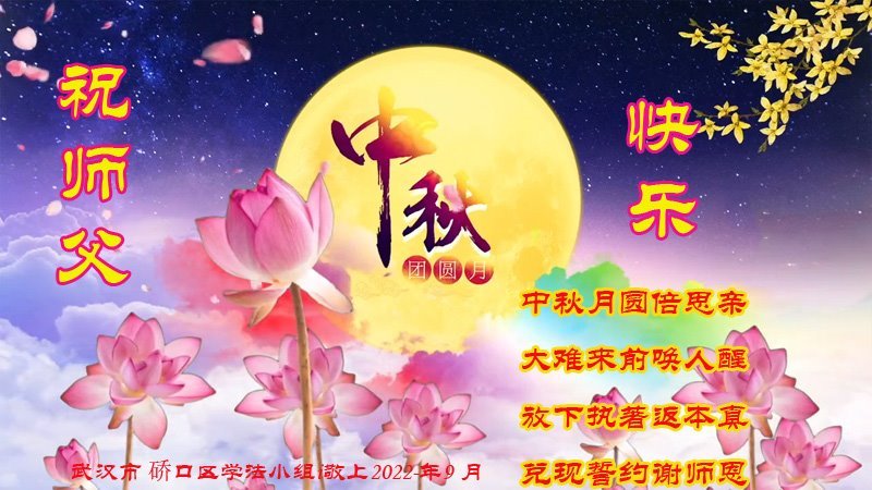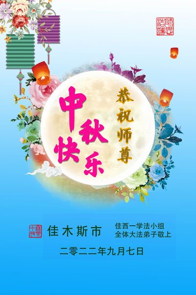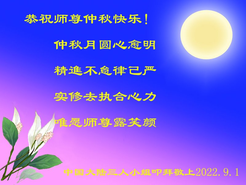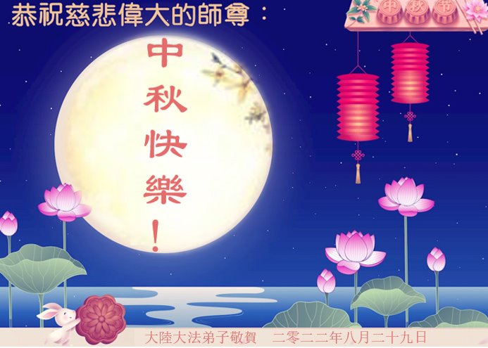 <英文版: http://en.minghui.org/html/articles/2022/9/11/203622.html>大陆11省、直辖市大法弟子恭祝师尊中秋好(31条)
