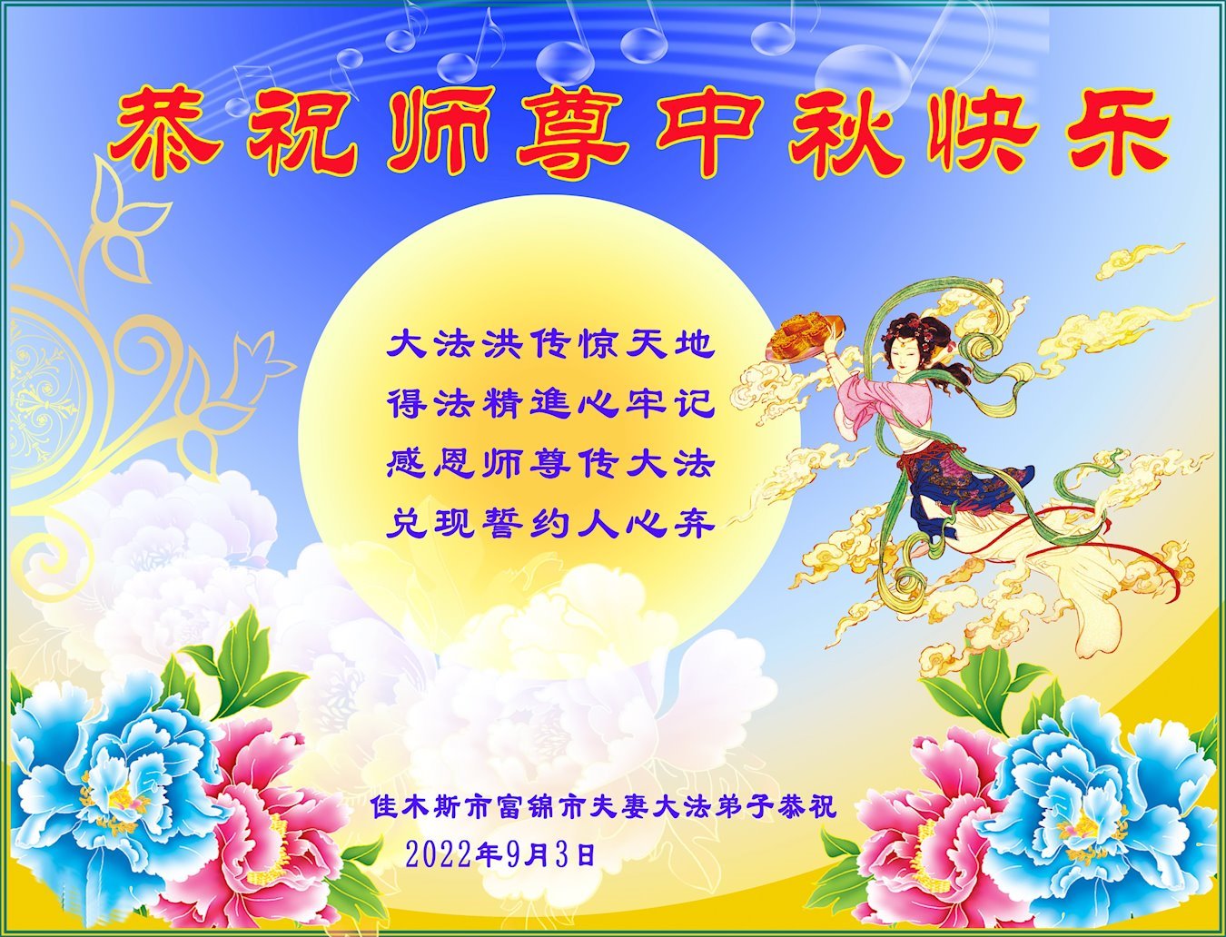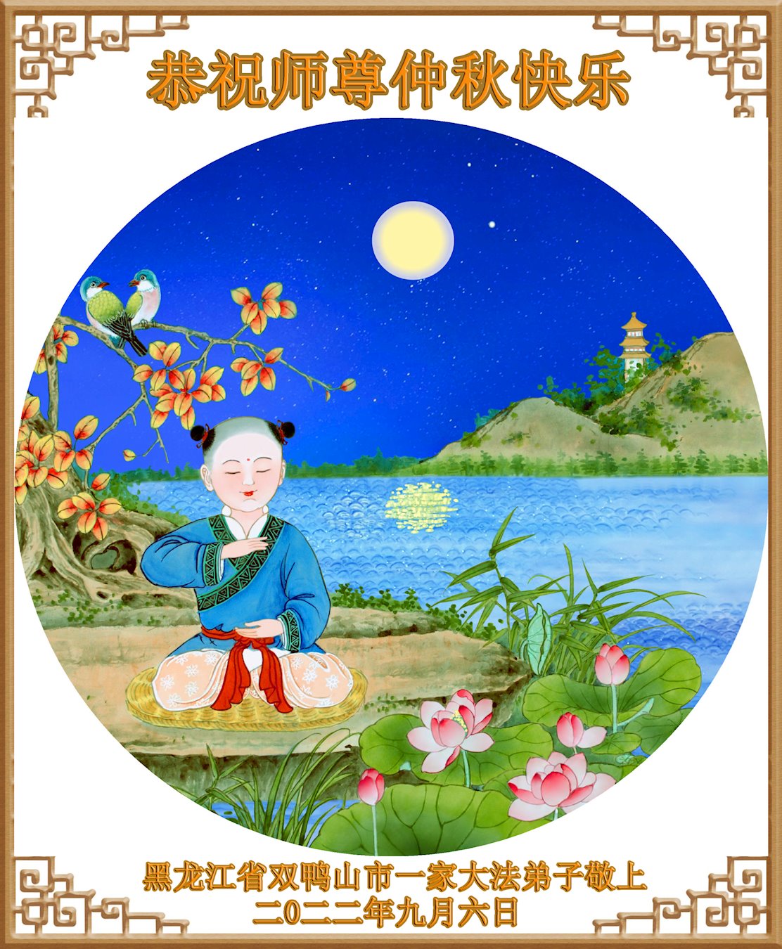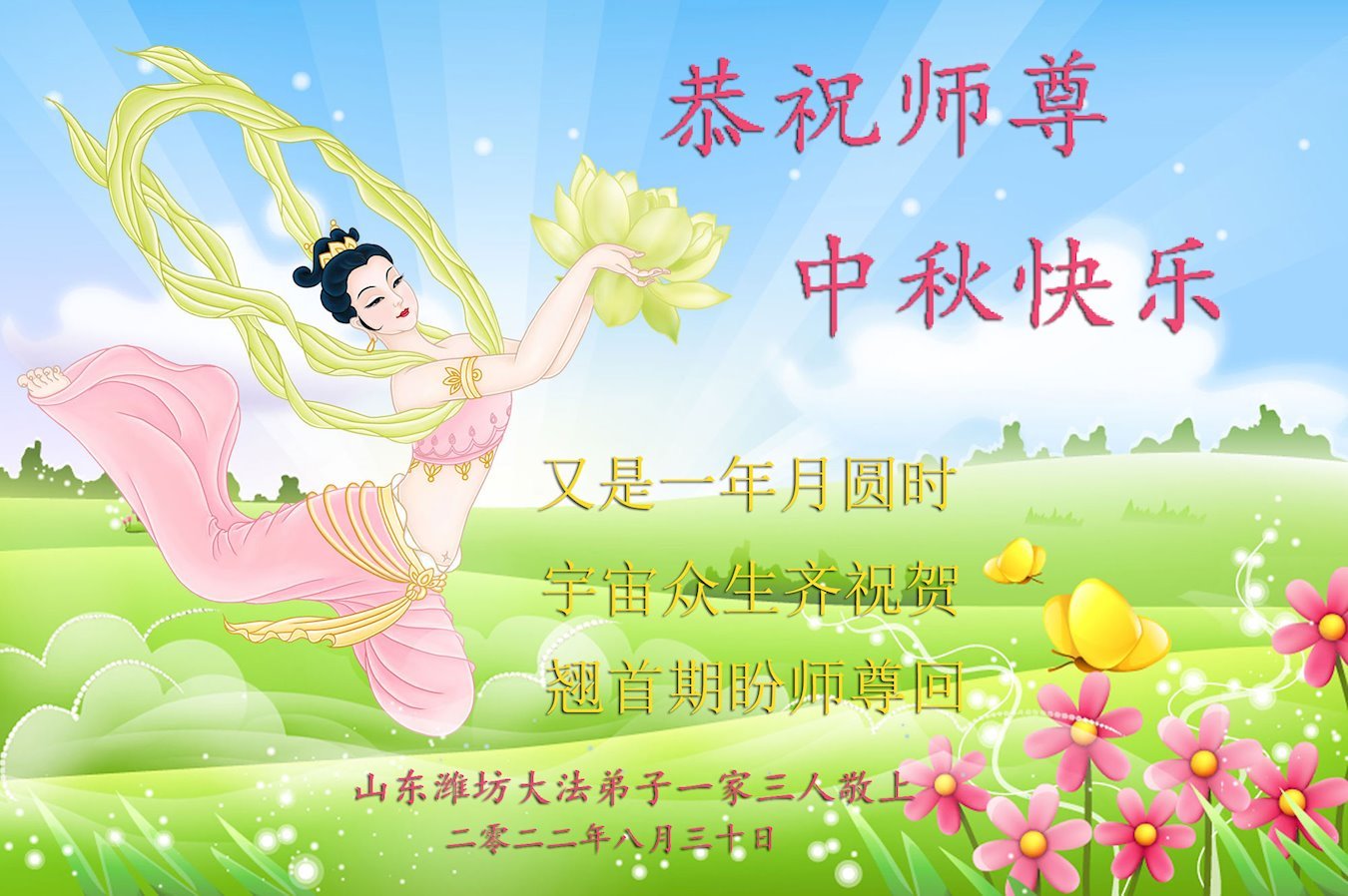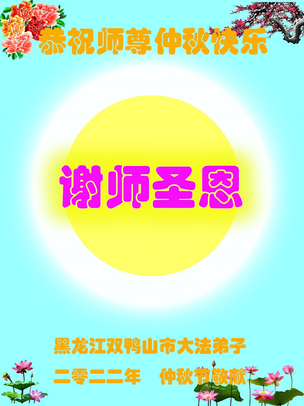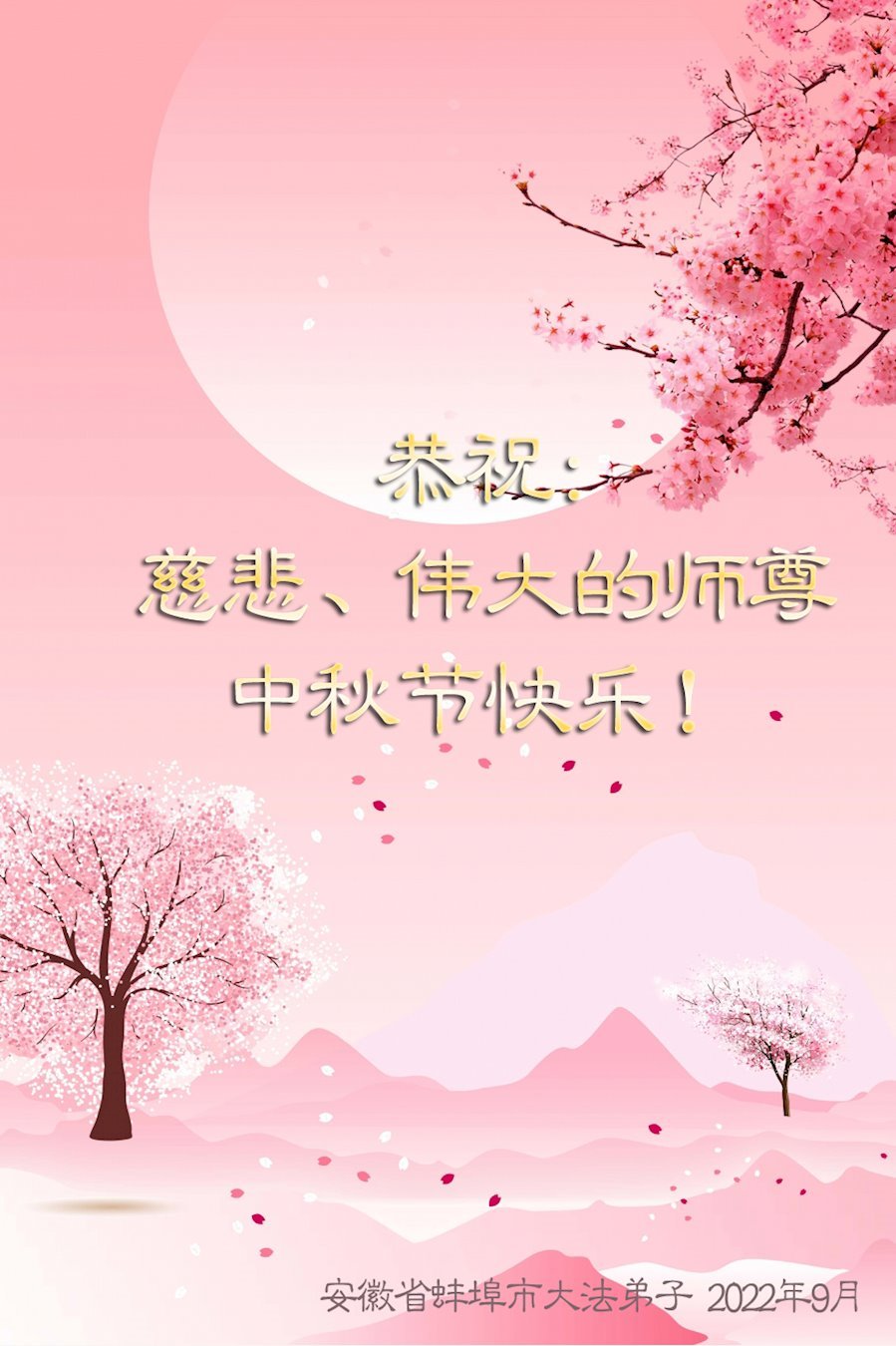 <英文版: http://en.minghui.org/html/articles/2022/9/11/203622.html>大陆11省、直辖市大法弟子恭祝师尊中秋好(31条)