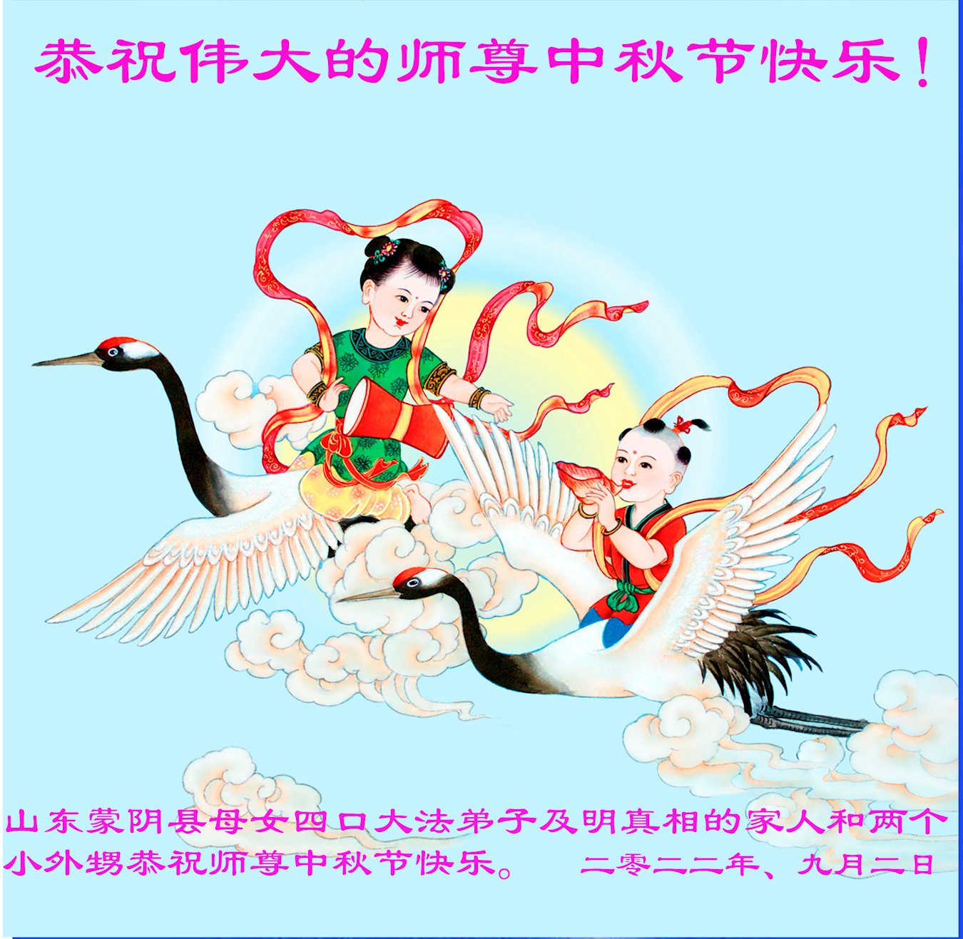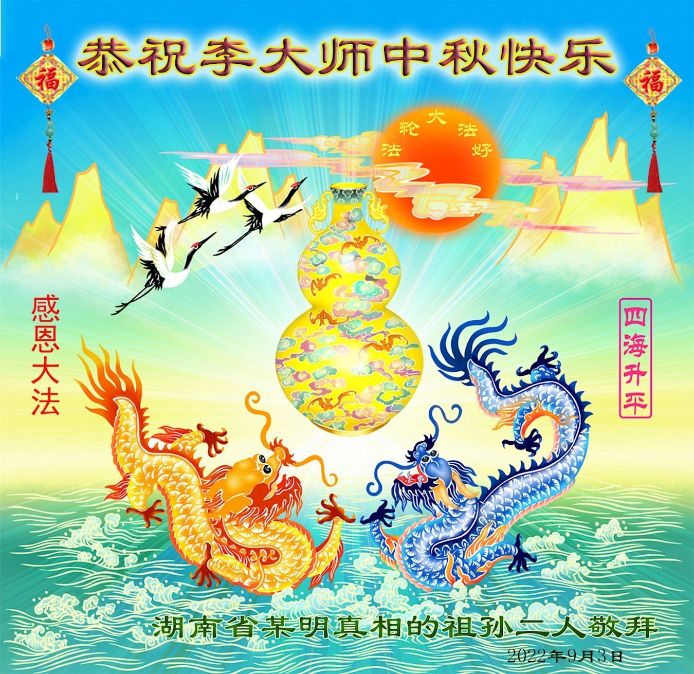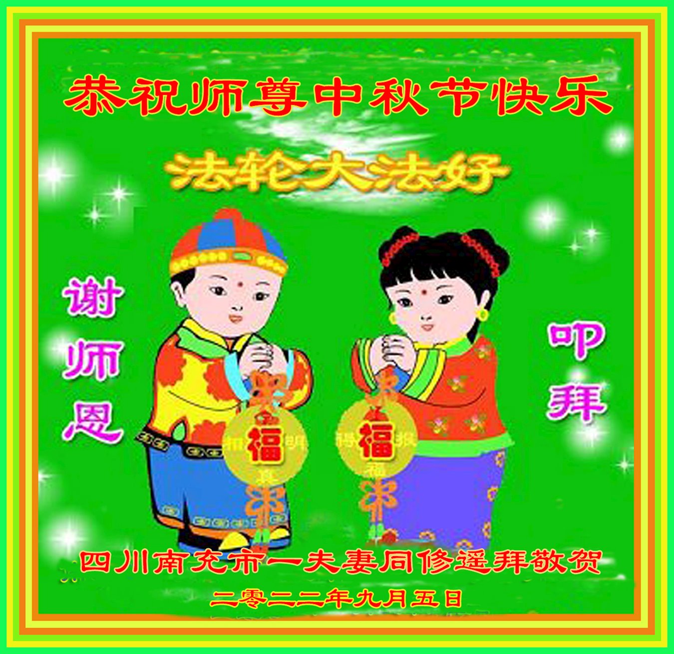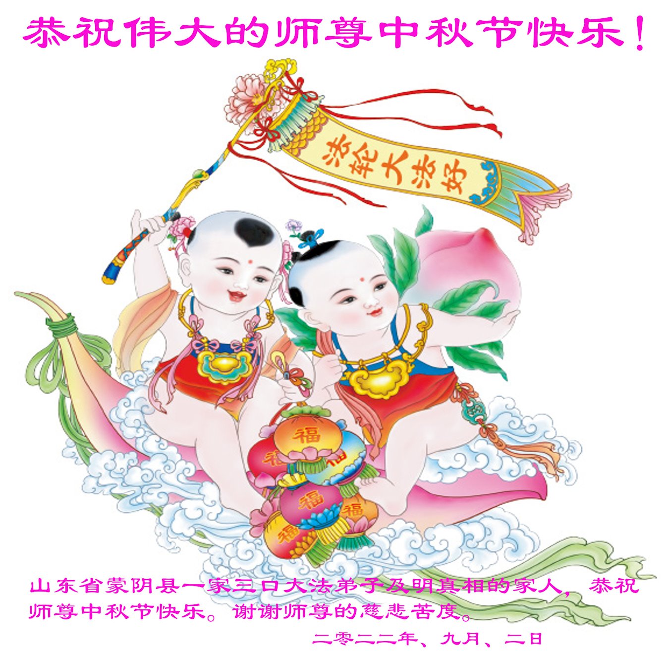 <英文版: http://en.minghui.org/html/articles/2022/9/11/203622.html>大陆11省、直辖市大法弟子恭祝师尊中秋好(31条)
