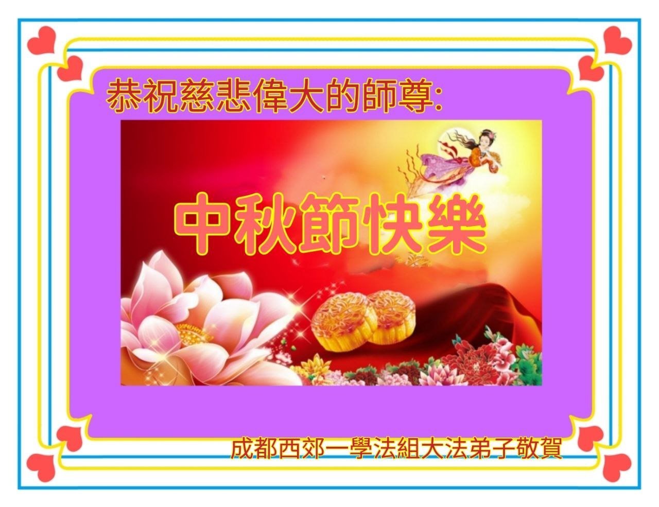 瑞士大法弟子恭祝师父中秋快乐!感恩师尊苦心救度,为弟子们、为众生的无量付出!