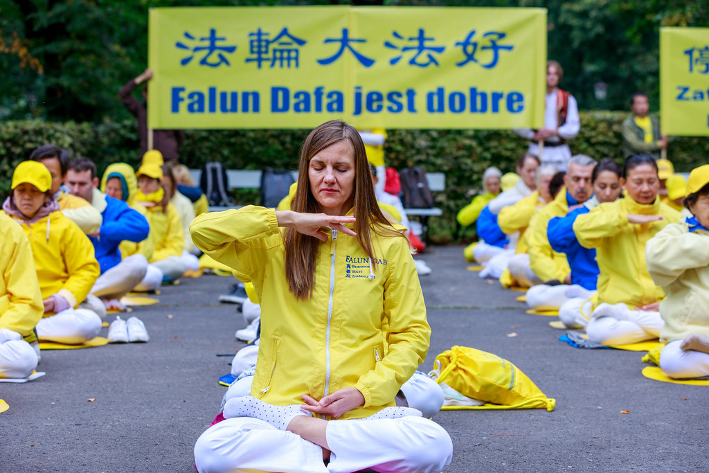 一位波兰在读大学生也表达,看到这么多人在炼功,一种很安静,很纯净,安详感觉。他认为信仰是人的基本权利,波兰人有过共产党统治的困难经历。对法轮功的迫害必须停止。