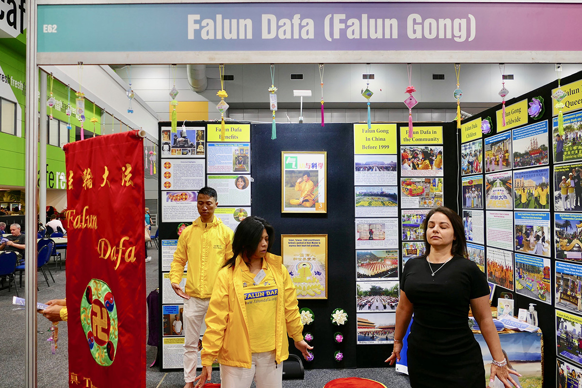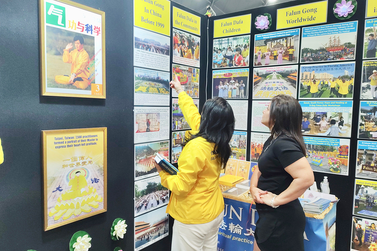 博览会上有一百八十七个不同的团体参展,为期三天的活动吸引了上万民众参与。法轮功学员向过往的民众介绍了法轮大法的美好以及被中共迫害的真相。有些民众在法轮功展位前学炼法轮功五套功法,很多民众向法轮功学员征询了当地炼功点地址,希望以后一起修炼法轮功。