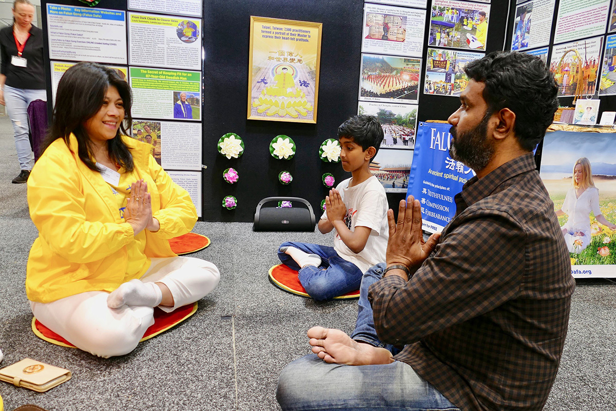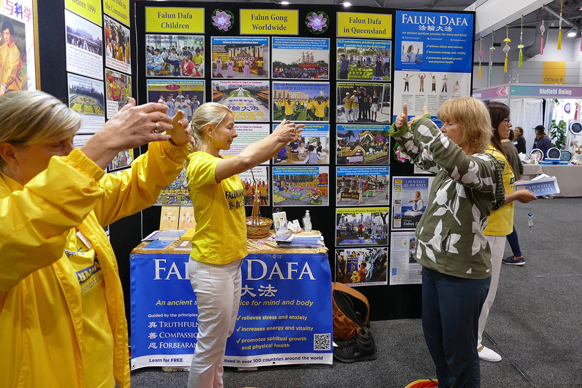 ![]() 图1~5:澳洲民众在布里斯本举行的大型“心智、身体和精神博览会”上了解法轮功真相并当场学炼法轮功。 |