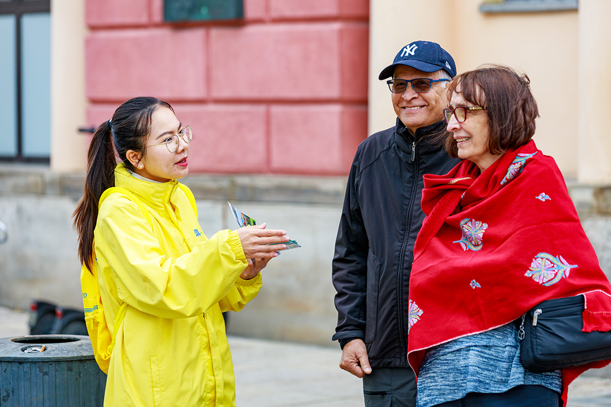 “我无法在当时当地亲身为反迫害抗争,但当我看到不公正的事情,特别是有大屠杀及活摘器官的时候我必须得为此采取行动。”心理系的大学生亚莉山大(Aleksandra)在签名后谈到:“我希望这一切(迫害)能够被制止。”