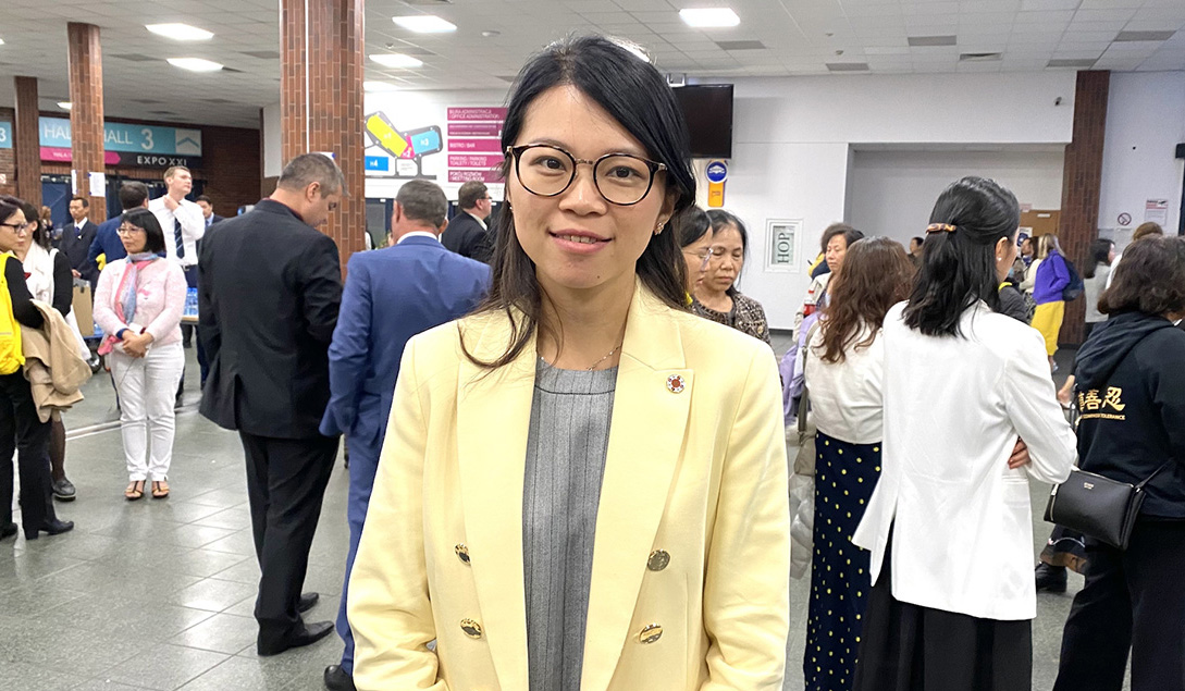 来自斯洛伐克的生意人、越南籍法轮功学员阮女士(Nguyen)表示,“作为大法弟子能参加这次法会我感到很荣幸,能来波兰展示法轮大法的美好也很高兴。”
