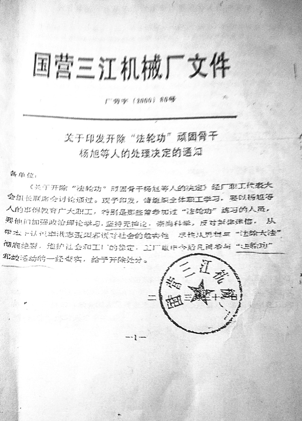 | 图1~3:杨旭被所在单位非法开除公职 | ||