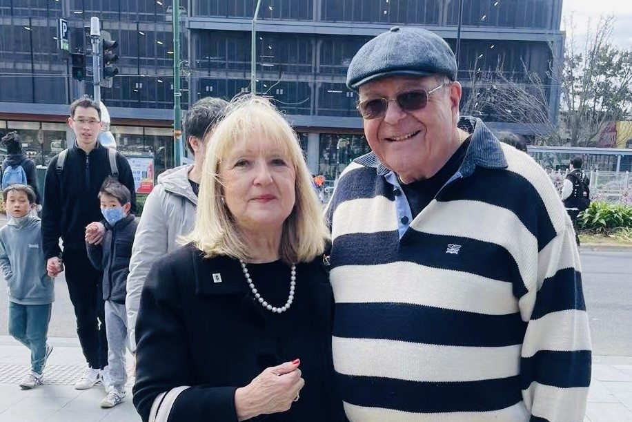 前维州立法会议员、前州议会“友台协会”共同主席康百珍(Jan Kronberg)与先生在当天的活动上,热情地和法轮功学员打招呼。