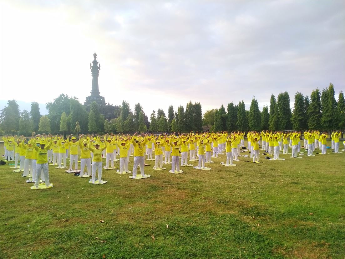 ![]() 图3:峇里岛法轮功学员集体炼功 |