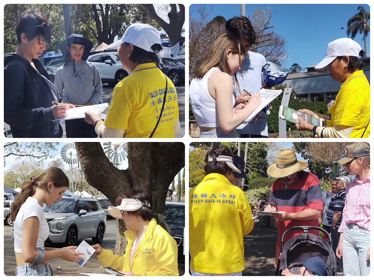 在庆祝活动中,法轮功学员向当地民众和游客讲真相,并征集反迫害的签名。许多民众签名并表示支持法轮功反迫害。