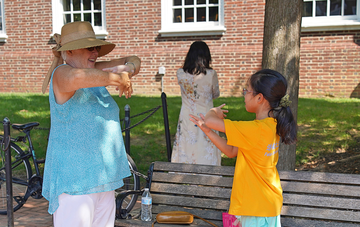 退休护士罗莎莉·怀内尔(Rosalie Wynell)和朋友马琳·凯瑞(Marlene Carry)边看功法展示,边学炼动作。她们停留了很长时间。怀内尔说,她感到很平静,很放松,打算继续学炼下去。凯瑞说,她有背痛病,希望学炼法轮功能得到改善。她们都表示,像法轮功这么平和的功法在中国被共产党禁止令人无法理解和接受,人们应该有选择信仰的权利。