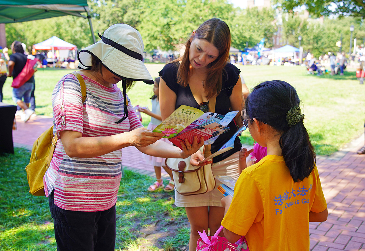 ![]() 图10~12:二零二二年九月十八日在纽瓦克社区日活动中,法轮功学员向游客介绍法轮功及其中共迫害法轮功的真相。 |