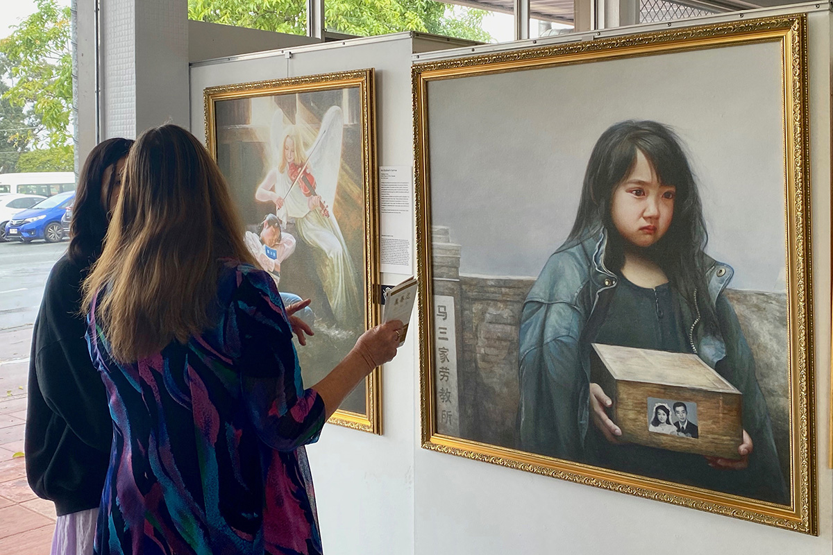 “艺术家们用他们的画笔,描绘了法轮功的美丽和那些在中国忍受残酷迫害的人们的勇气。这些作品也揭示了持续了二十三年的迫害的残酷性和非人性。”