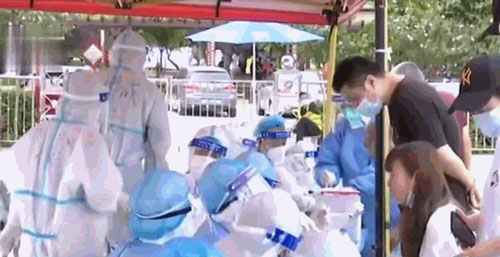 ![]() 图2:大连市民在做核酸 |