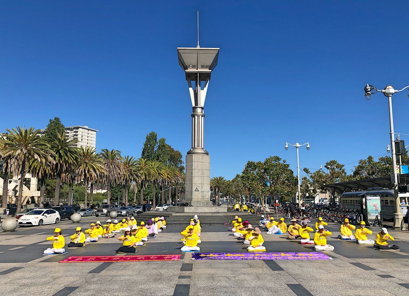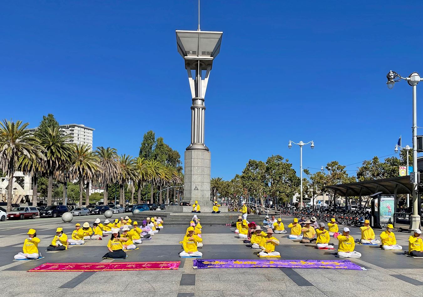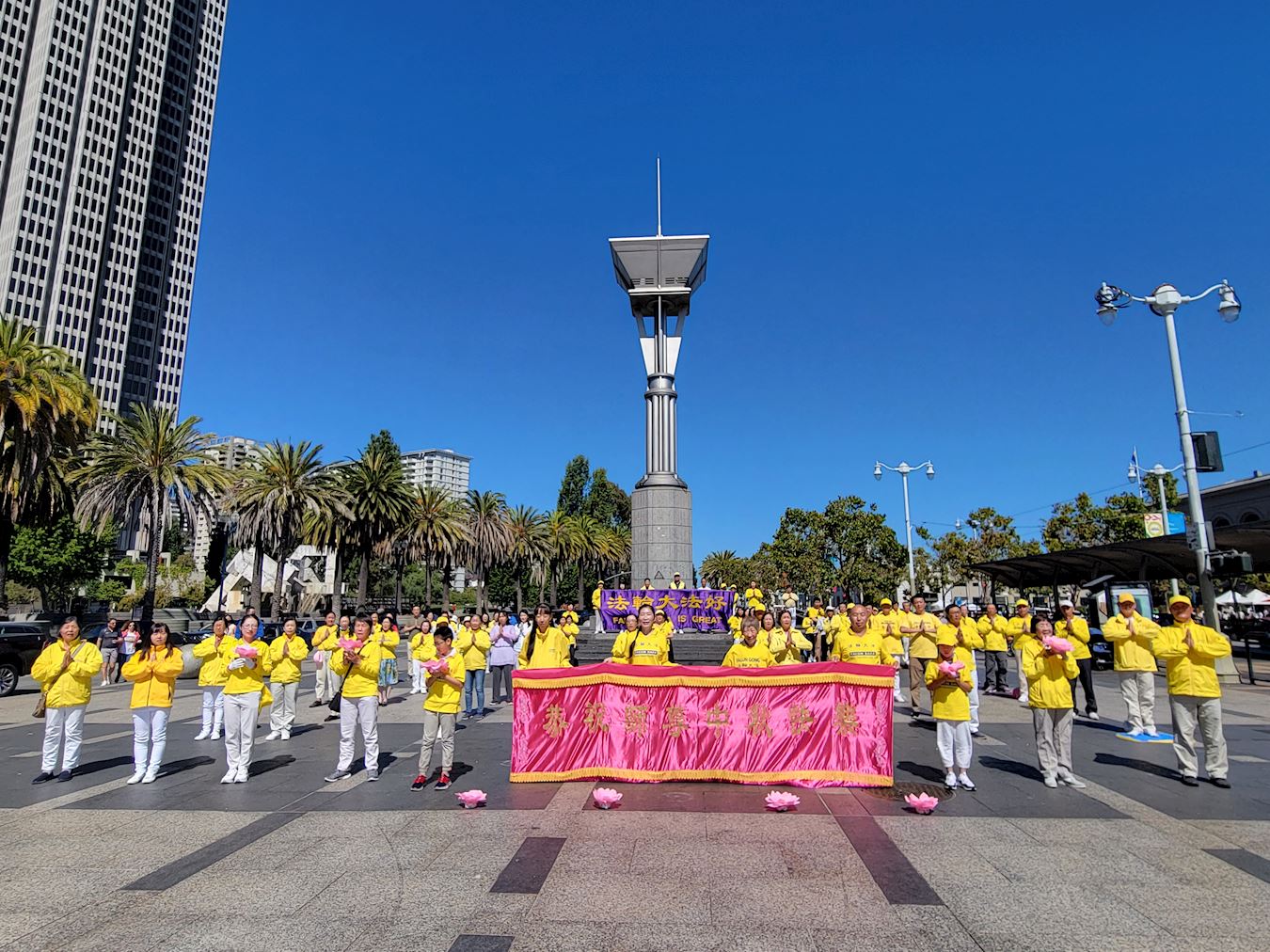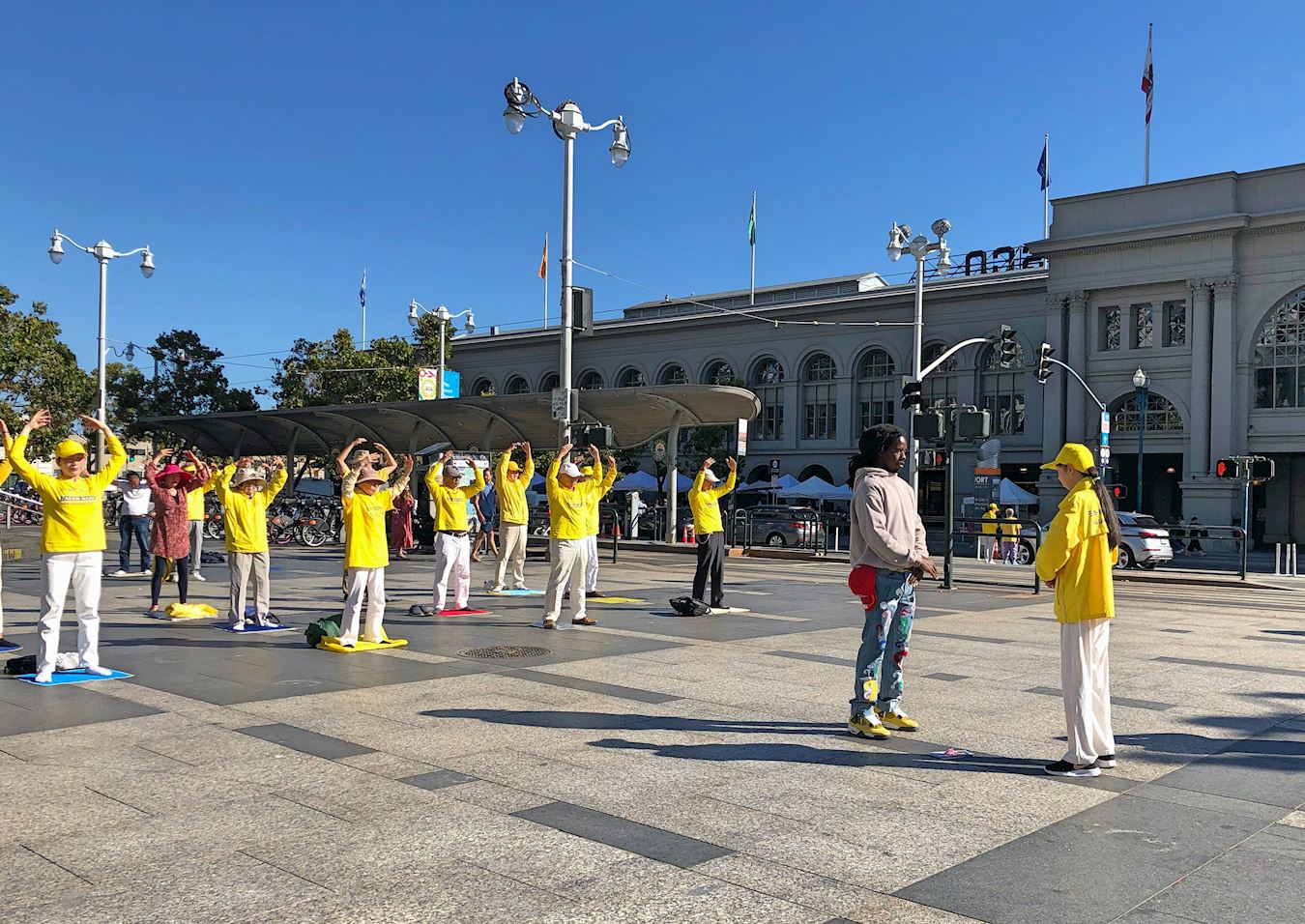 ![]() 图11:二零二二年九月三日早上,旧金山湾区部份法轮功学员怀着感恩之心来到旧金山渡轮大厦前的广场,以集体炼功来展示大法的美好,同时遥祝慈悲伟大的师尊中秋节快乐。 |