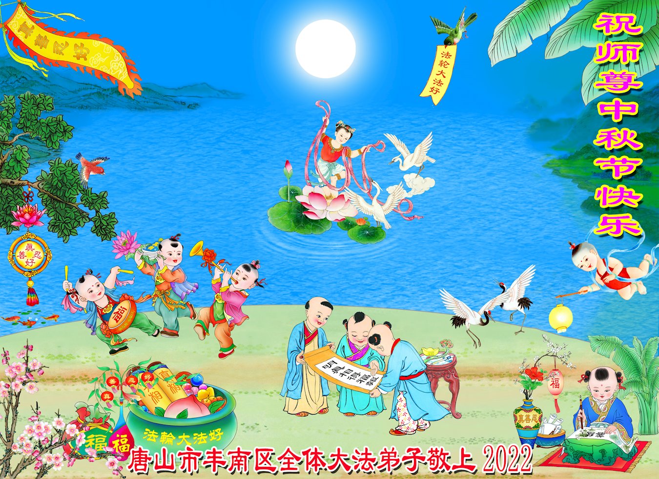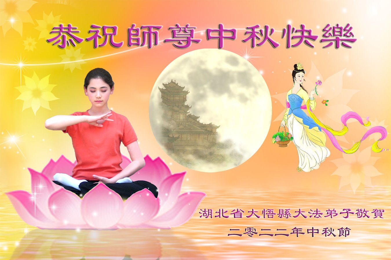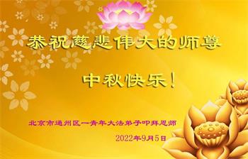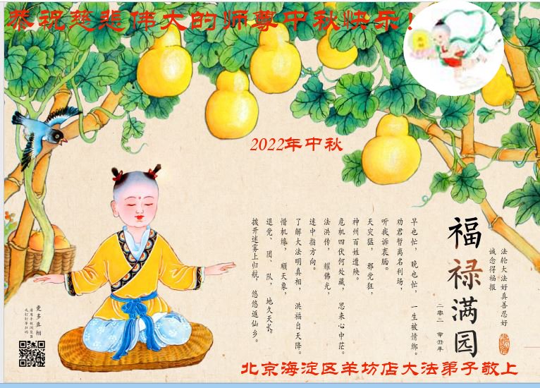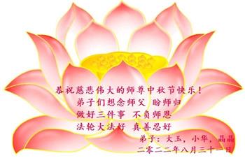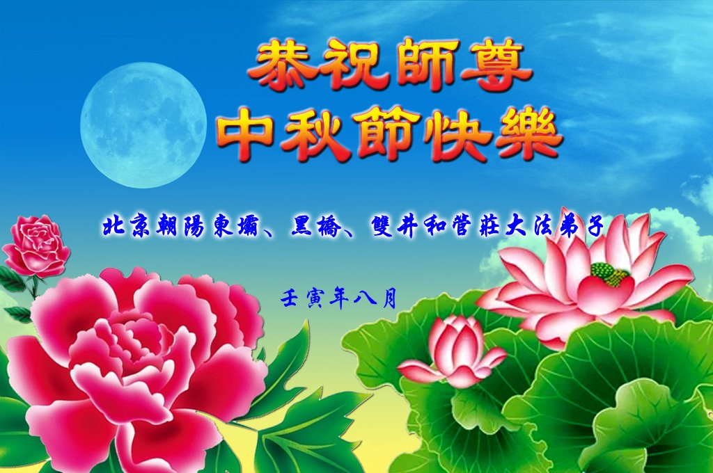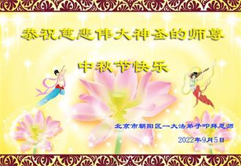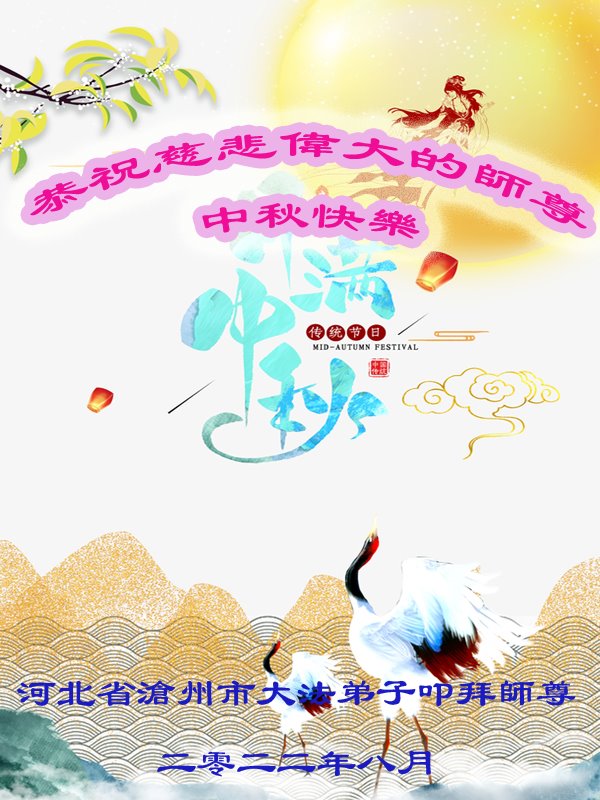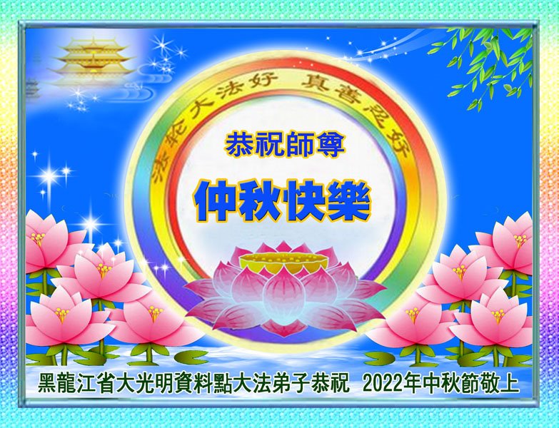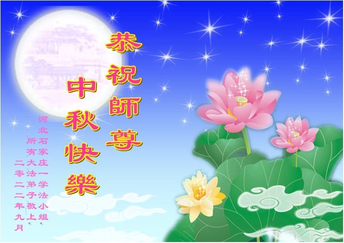 <英文版: http://en.minghui.org/html/articles/2022/9/9/203242.html>精進修己多救人 中国各省大法弟子恭贺师尊中秋快乐