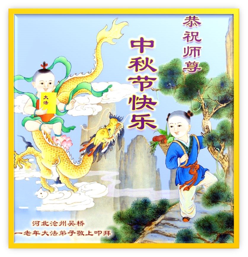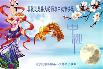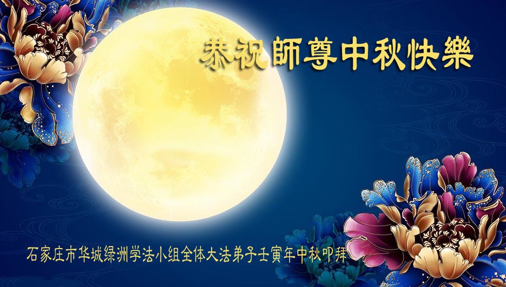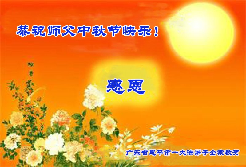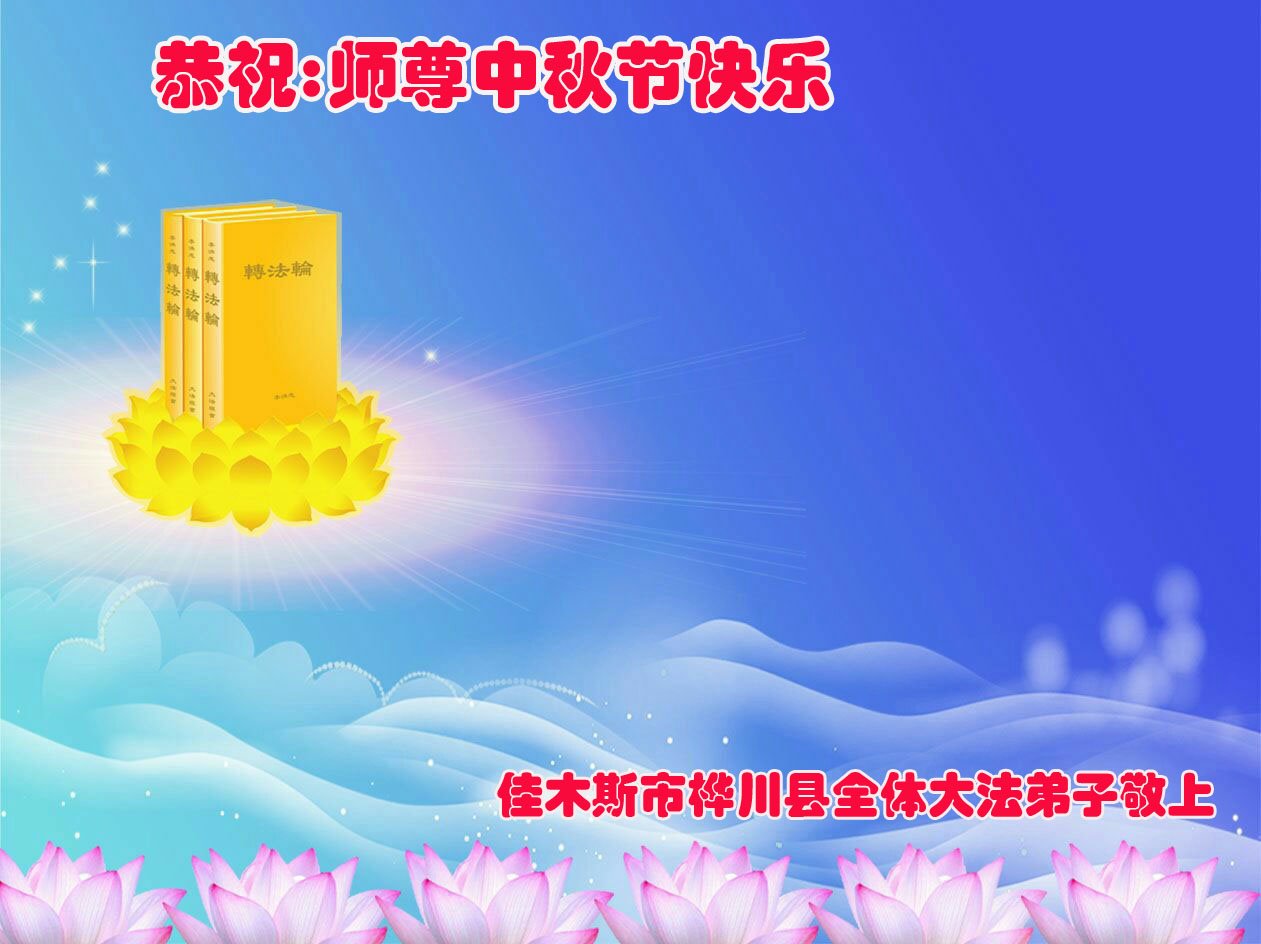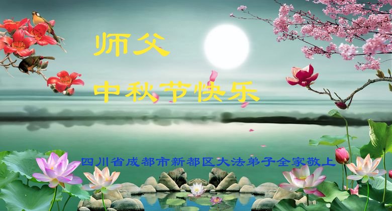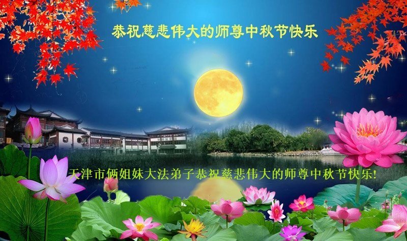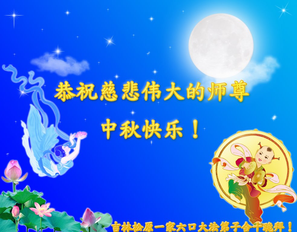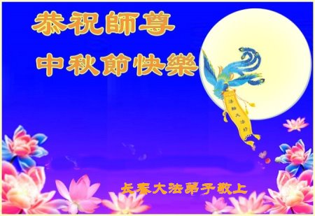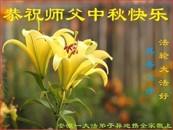 是师父的巨大承受才使我们又迎来了一个温馨的中秋。弟子们怀着感恩的心恭祝恩师中秋佳节快乐!历史走到今天的关键时刻,诚念“九字真言”而逢凶化吉、遇难呈祥的真实例子,证实了法轮大法在人间的神奇,破除了中共的欺世谎言。弟子每一个前進的步伐都浸透着师父的心血,我们一定更加努力,踏踏实实的修好自己,抓紧救度众生,完成史前大愿!